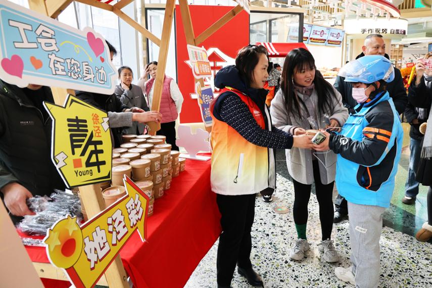 在万科天空广场的活动现场,中午时分,美食广场人气颇足,美团和饿了么的外卖小哥们也已经开始接单送餐。排在第一个的美团小哥有些着急,伸头张望着,工作人员马上递上一碗粥。小哥一手拿着粥,一手拎着需要送出的餐食,奔向了他的电瓶车。徐泾镇总工会的相关负责人告诉记者,万科天空广场是徐泾镇内较大的一个商场,开业3年多来,小哥们一直在2楼这块区域休息,接单。经过调研后,他们也决定把活动放在这里,“不影响他们接单,又能准确地给他们送上腊八粥,对他们来说,时间是最重要的。”