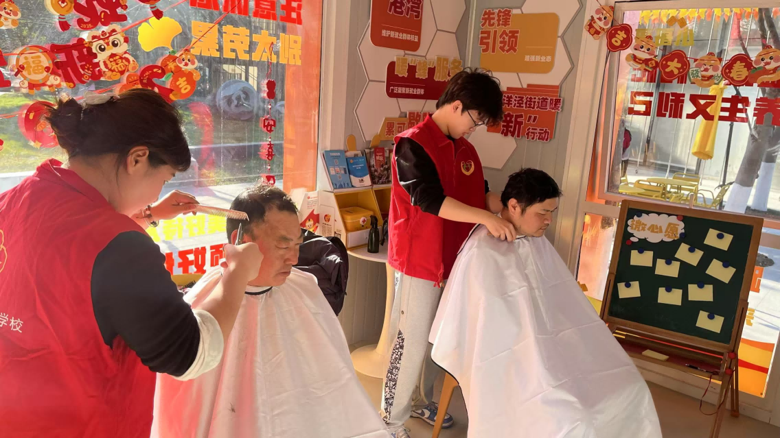 在潍坊新村一百杉杉大厦户外职工驿站及WE来坊户外职工驿站,街道总工会专门请来浦东工匠为户外职工免费理发,活动现场多名户外职工体验到了热情服务。洋泾街道总工会也在新落成的党群服务阵地组织第二轻工业学校劳模志愿团成员为新就业形态劳动者免费理发。北蔡镇总工会在五一户外职工驿站安排了理发之余,还安排了修补衣服、雨伞等生活便利服务。志愿者们仔细检查每一个亟待需要修补的物件,灵巧地将它们一点点重新焕发生机。“这些东西看似微小,却实实在在解决了我们生活中的小烦恼。”美团小哥开心的向志愿者说。