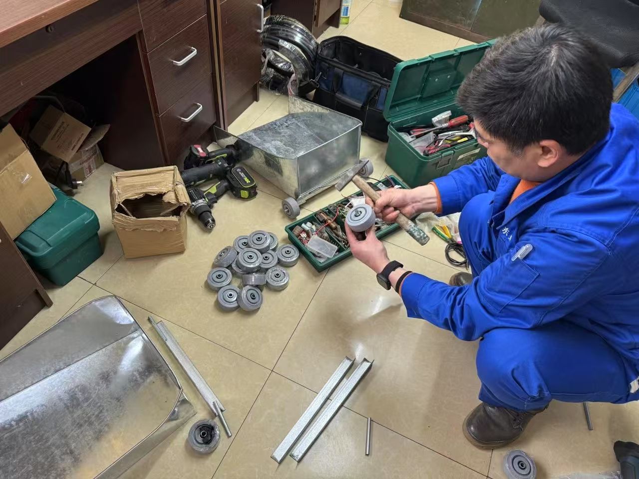 在区绿化市容局的指导下,东虹公司首次对传统畚箕进行改良,通过加装金属轴承系统,让畚箕移动变得轻松省力,一线环卫工人反响热烈。然而,在接下来的调查走访过程中,金属轴承易生锈、噪声大的问题依旧存在。