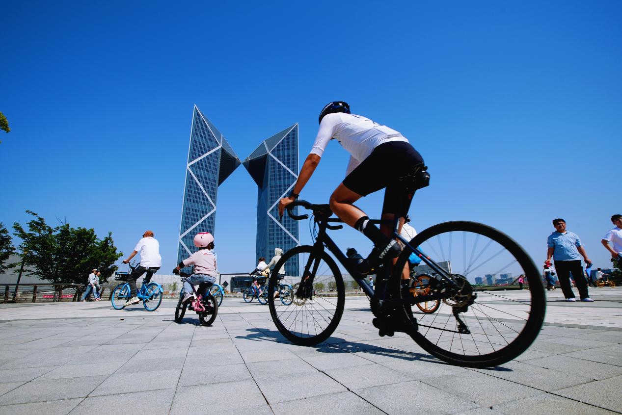 据悉,骑行路线全长11公里,沿途经过庆典广场、1号码头、滴水湖北岛、中国名家主题雕塑园等多个地标。青年组的骑手们弓背疾驰,家庭组的车流中,父母与孩童传来欢声笑语。