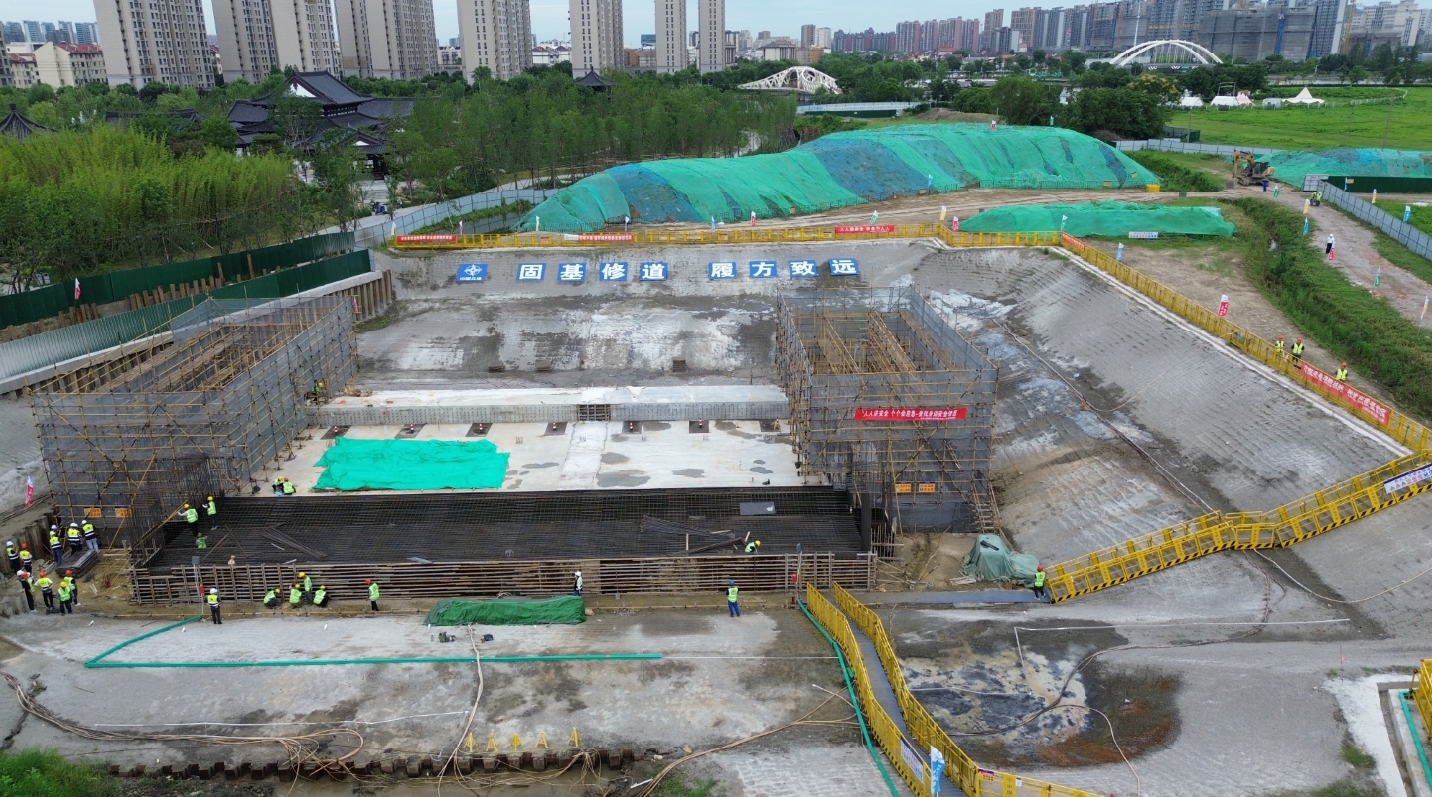 活动现场聚焦陈桥浜西泵闸这一区域防洪排涝关键设施。据介绍,该泵闸净宽32米,设计流量1.2立方米每秒,结构涵盖闸室、内外河侧消力池等,顺水流方向总长101.45米,建成后将成为青浦新城环城水系综合治理的核心节点。青浦区中央商务区东大盈港河道整治工程(崧泽大道-盈港路)北起崧泽大道,南至青安路陈桥浜段,建设内容包括新建及改建护岸3102米、5座水闸/泵闸、防汛道路1.09万平方米、3座桥梁及配套绿化景观,全面服务于长三角一体化示范区水安全保障体系构建。