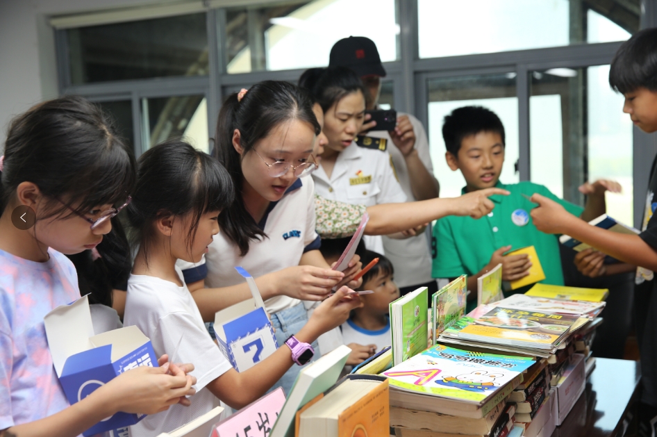 此外,行进于各站点的间隙,青年职工为大家带来防溺水知识、救生衣穿戴等水上安全课程;在互动体验区里,团委青年手把手教学单结、布林结等水手结技法,孩子们积极尝试,在实践中进一步感受海事文化;船上精心设置了温馨的亲子阅读区域,给职工和孩子提供了静谧的亲子空间,50余本亲子读物在家庭间流转,进一步传递书香文化。