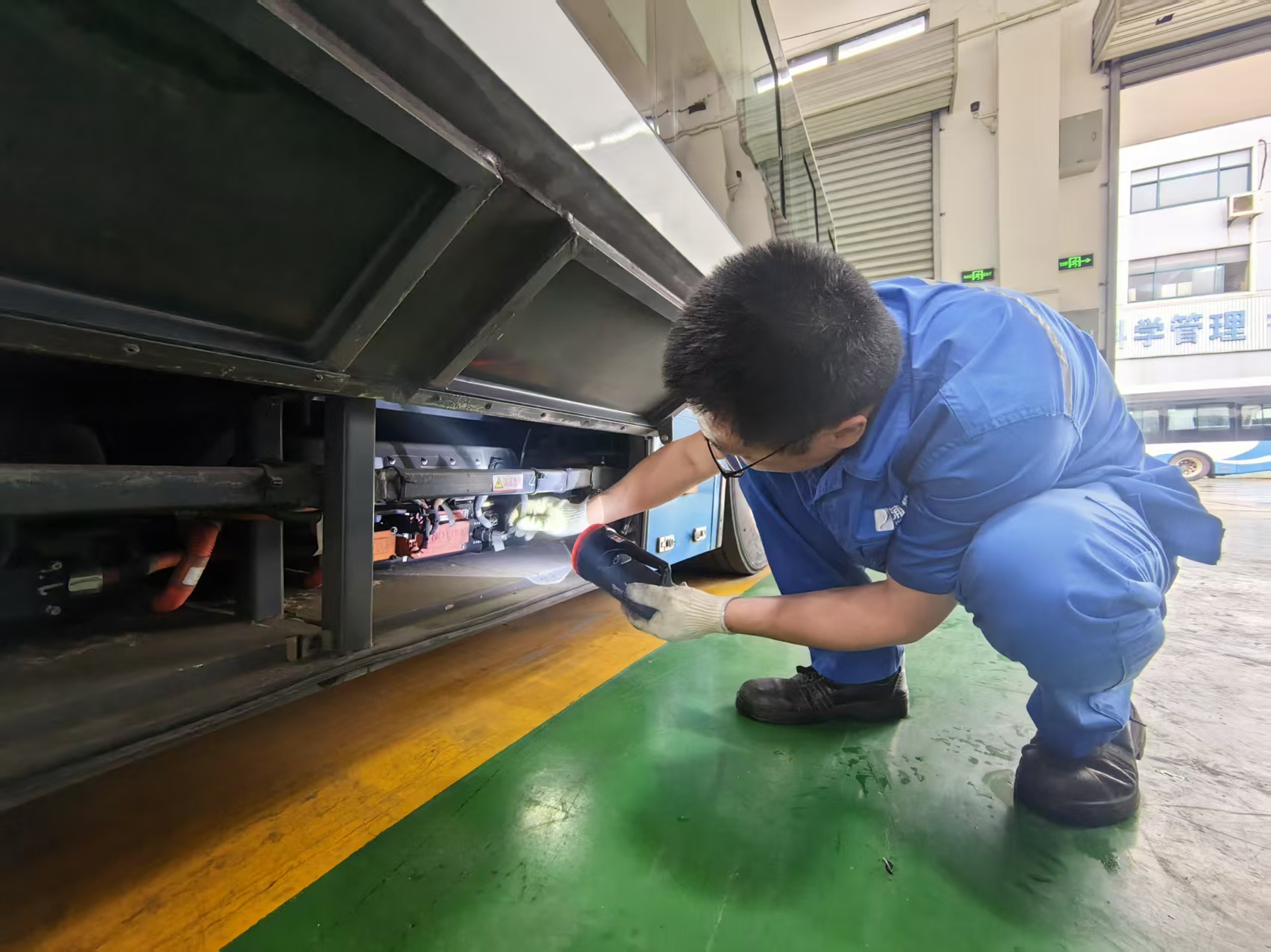 7月30日一早,天色微亮,南汇公交分公司与车间管理人员已按照车辆首班车发车时间提前到岗。他们第一时间对接线路调度员与线长,细致询问首班车发车状况及运营班次是否正常;同时紧盯驾驶员出车前的例保工作,对车辆雨刮器、灯光、轮胎、制动等关键部件逐项检查,不放过任何可能影响安全的细节。“首班车路况最复杂,必须把风险挡在发车前,让乘客坐得踏实。”一位管理人员的话语里,藏着沉甸甸的责任。