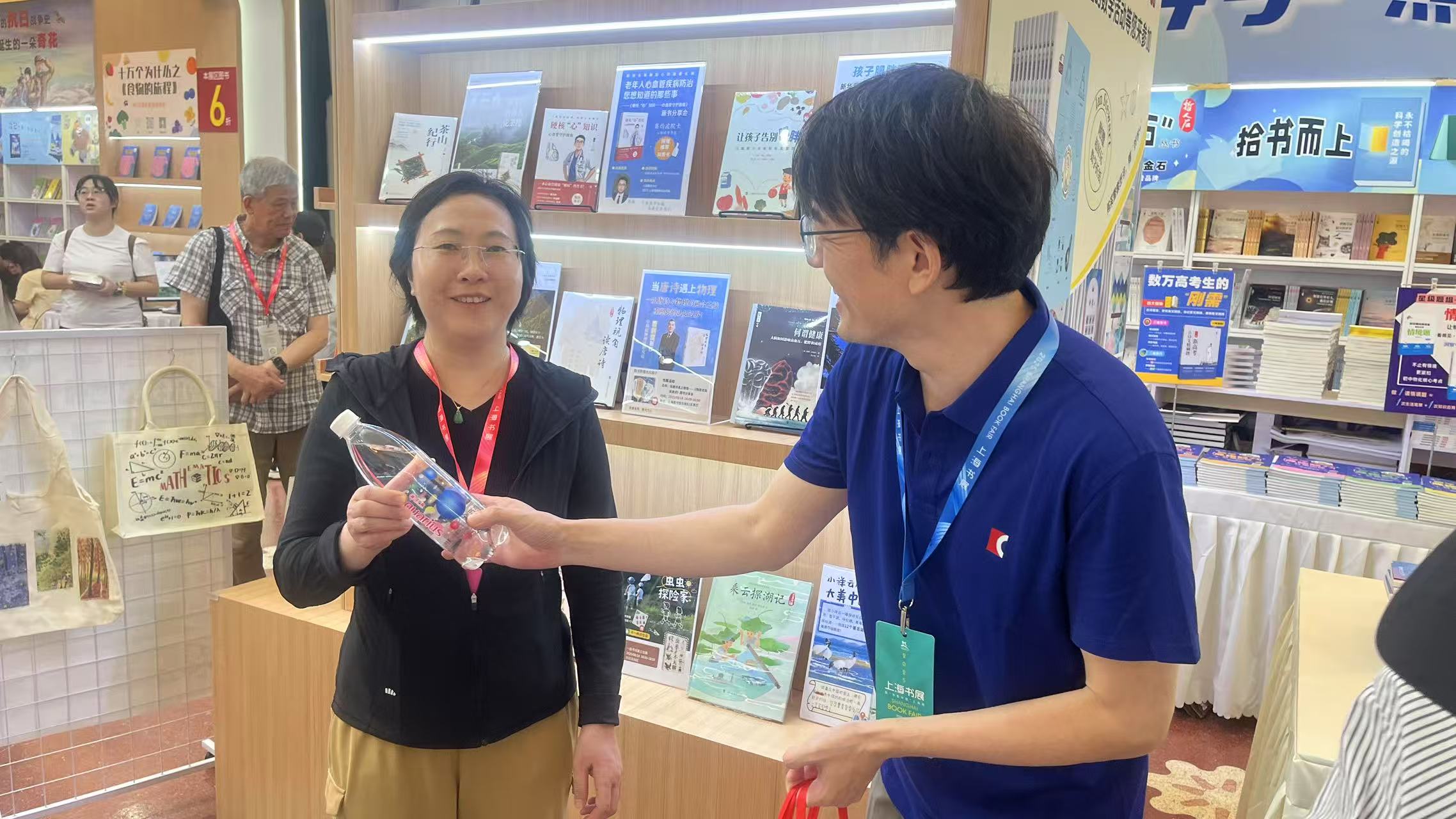 记者前去采访时恰是下午一点,工会相关负责人开始发放饮料以及文创雪糕,在世纪出版集团的多个展位上,正在忙碌的员工接过饮料,喝上一口,马上便投入后续的工作中去。据了解,在整个书展期间,工作人员都是处在“早九晚九”的高强度工作之中,加上天气异常炎热,他们的健康和心理状况也需要被及时关注。据悉,在书展期间,世纪出版集团工会还将为员工们发放“防暑礼包”,包括便携式小风扇、清凉毛巾等防暑物品,助力工作人员全力保障书展。