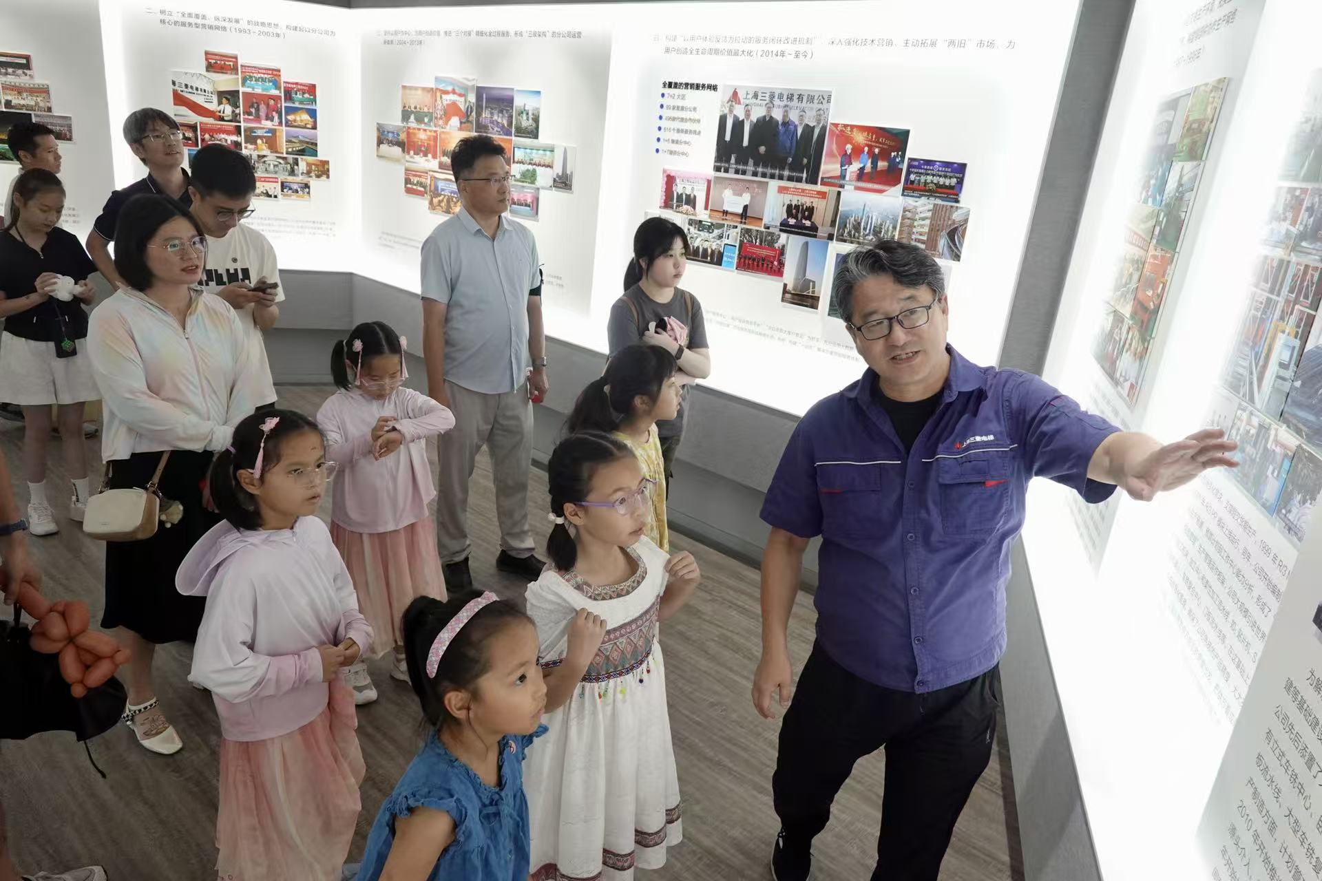 看完宣传片后,参与活动的职工家庭分组前往厂区参观,先后走进产品展示馆、企业文化展示厅和试验塔。在产品展示馆里,工作人员用通俗的语言讲解电梯的构造和技术特点,让家属们轻松看懂;企业文化展示厅里,通过企业发展的老史料、获得的荣誉展品,家属们能直观明白职工工作的价值;试验塔里的安全测试演示,也让家属们对企业产品有了更深入的了解。