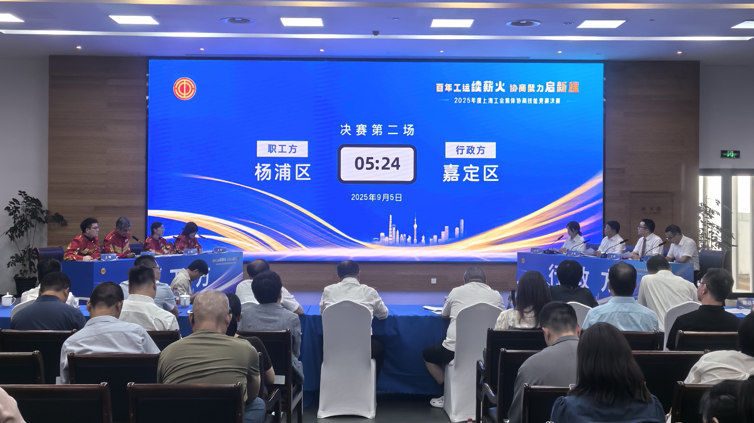 9月5日下午,“百年工运续薪火 协商聚力启新程”——2025年度上海工会集体协商技能竞赛决赛举行。从全市初赛选拔出的4支代表队,两两组合,分别代表职工方、行政方,模拟集体协商谈判场景,现场评委和观众,都沉浸于选手们精湛的技艺和智慧的交锋中。