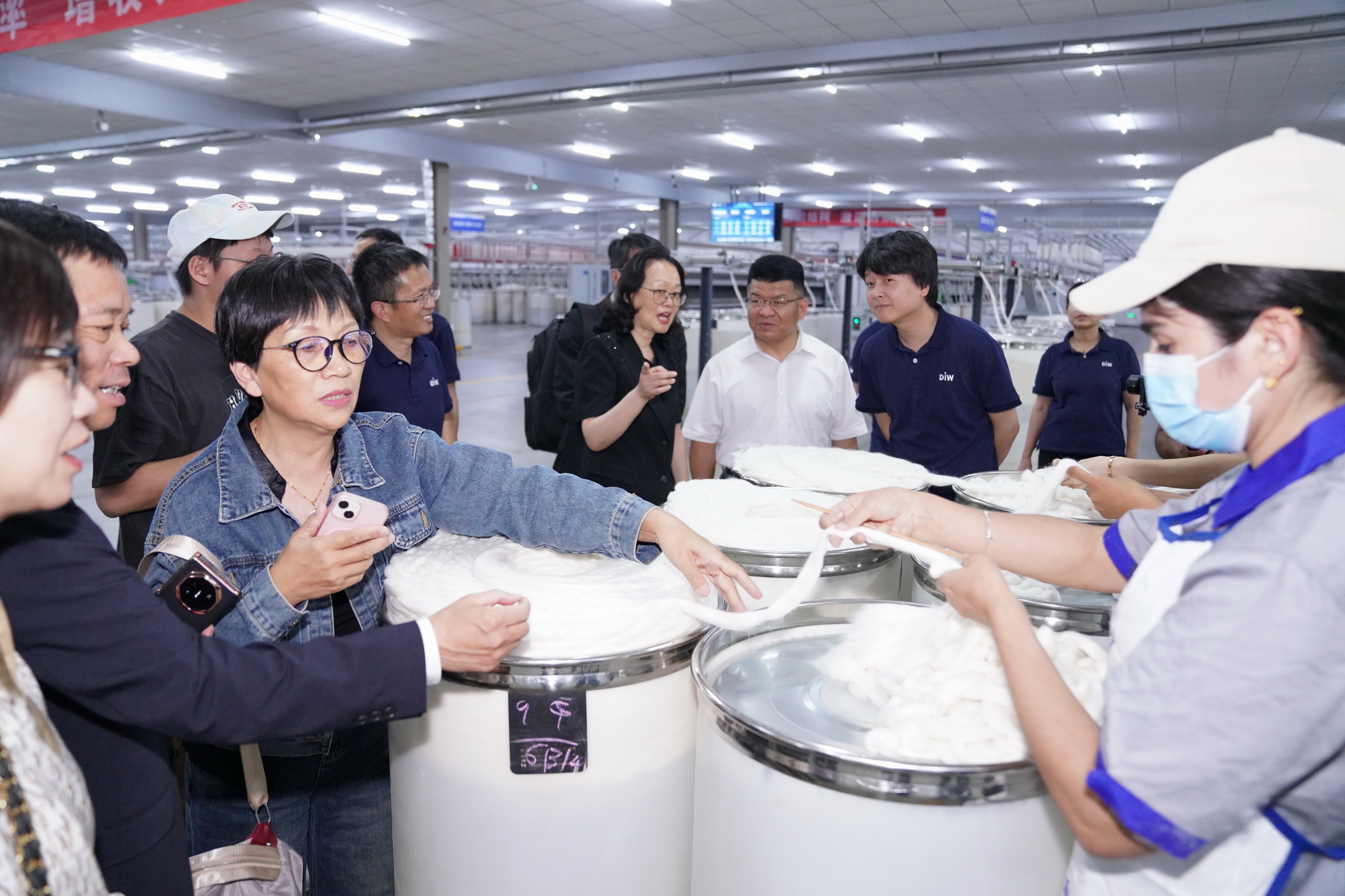 此次,上海纺织工会、数智世界集团邀请了数位在上海纺织行业的资深劳模,他们中有工厂的管理者、服装行业的设计者,也有车间一线的从业者。记者随劳模走进位于莎车县的睿灏纺织智能化工厂,来自上海的劳模一下子便被干净整洁的车间环境、全智能的品控链条震撼到。全国纺织工业劳模陆美华此前一直耕耘一线,从事细纱挡车工作。在厂房里,她看到工人们驾驶着电动小车,穿梭在流水线之间,不禁感慨:“这样的生产环境比我们那个时候好太多了。”陆美华表示,从最开始的清花、梳棉到预并、粗纱到最后的细纱,在厂房里的每一步都展示出高度智能化和专业化。
