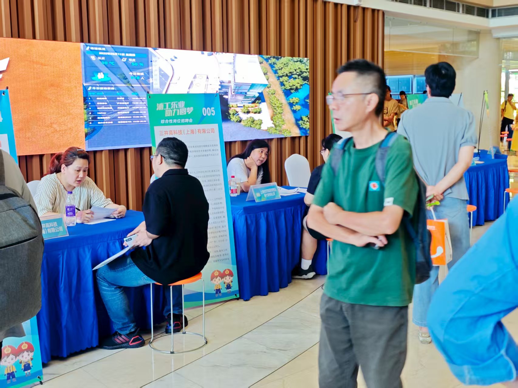 7个月来,浦东新区总工会以“浦工乐业 助力圆梦”为主题的招聘会已经开办了8场,每一场均有不同主题,如“春风行动”、先进制造、非公企业、困难就业人群、专业技术、新就业形态、综合性岗位等专场,参与企业345家,提供岗位2191个,通过线上与线下相结合的方式,累计服务求职者超过1.5万人次。活动现场设置有“岗位招聘”“职业指导”“生育友好岗”“咨询服务”等专区。服务行动的开展为构建起“产业需求精准对接、职业能力动态提升、就业服务普惠共享”的现代化职工就业生态体系建立发挥了积极的作用。