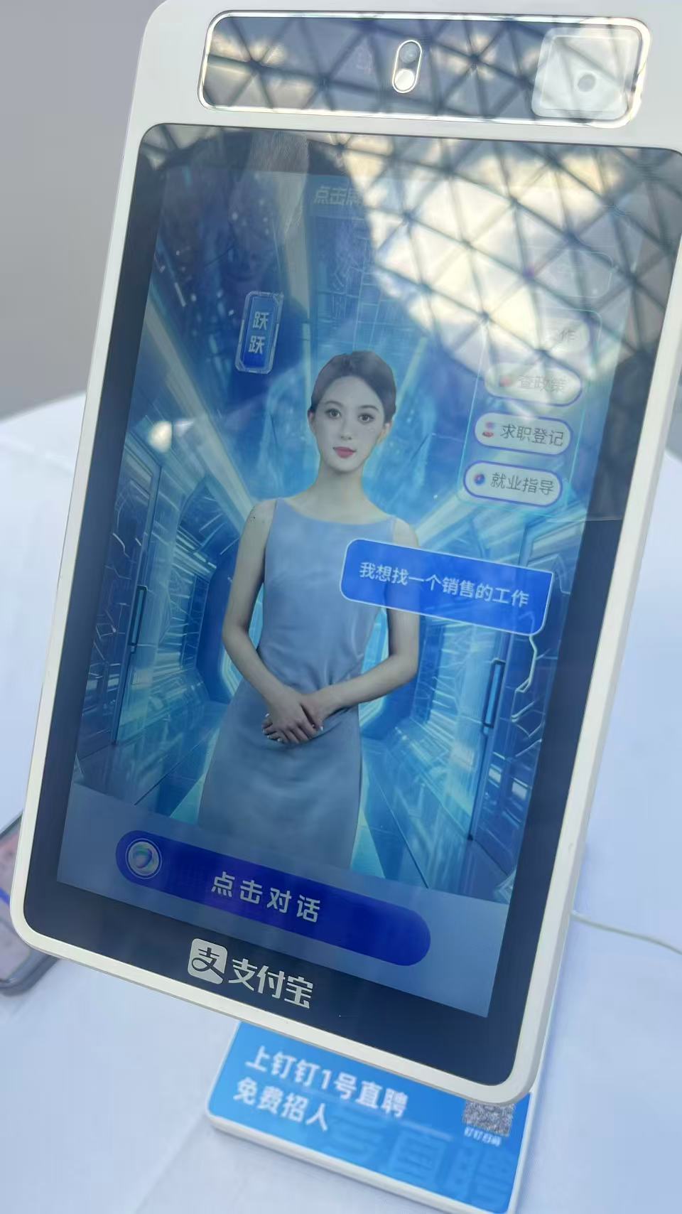 专区内中智股份、同道猎聘集团、外企德科、小砖块等多家人力资源服务机构携数智设备陈列展示,邀请求职者深入体验AI数字人智能模拟面试、AI就业辅导小站、1号AI求职机等前沿数智求职产品,感受数字化特色求职的魅力与便捷。而一旁的直播带岗区域则化身“云端职介所”,专业主播化身“求职向导”,围绕人工智能、AI领域岗位进行深度解析,从岗位职责到职业发展,全方位答疑解惑,吸引线上观众踊跃参与。