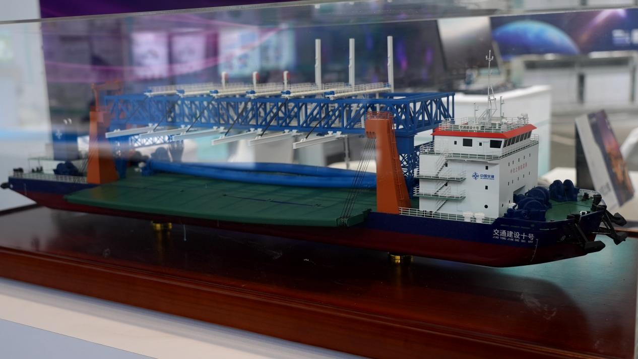 据介绍,全球最大的智能环保多功能铺排船“交通建设十号”成为展会焦点。该船全长116.6米,型宽25米,其智能化作业系统实现了革命性突破,通过机械臂式充灌装置和多系统协同控制,有效降低人工成本,作业效率显著提升。在施工能力上,新型泥浆泵组使日产能跃升,适用于多种复杂水域工况。全船采用全电力驱动和智能能耗管理,符合最高环保标准。其搭载的三维可视化与AR技术,将铺设精度提升至新高度。此外,卓越的机动性使其能在8级风浪下稳定作业,模块化设计更使其具备多功能拓展能力,设备利用率大幅提升。