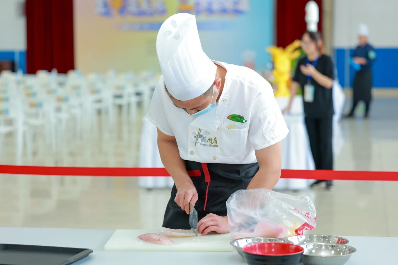 现场选手们身着专业的厨师服,精神抖擞,信心满满。大赛现场气氛热烈,紧张而有序。在规定的时间内,他们纷纷使出浑身解数,展现自己的精湛厨艺。热菜烹饪环节,选手们精心挑选食材,熟练运用各种烹饪技法,煎、炒、烹、炸、烩,样样精通。