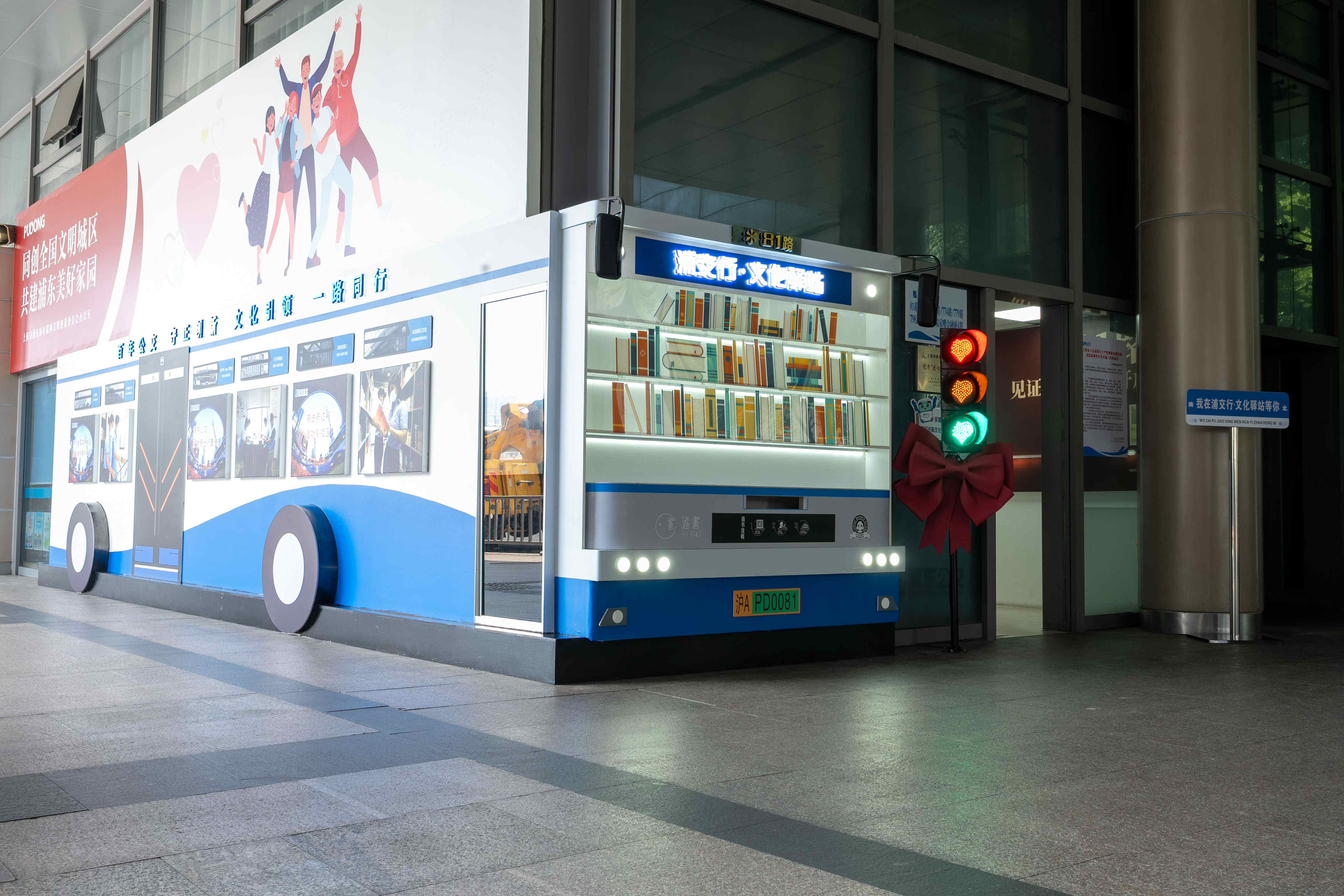 位于陆家嘴连廊公交枢纽站的“浦交行·文化驿站”,整合了“智慧调度、品牌展示、文化阅览、职工休憩、共享书柜”五大功能,可以饮水热饭、小憩放松、锻炼身体。