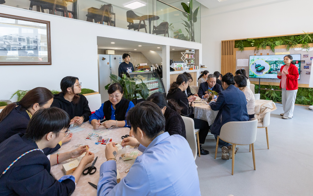 与此同时,“非遗”职工午间课堂同步启动,首期“非遗宋锦饰品制作”课程人气爆棚。职工们沉浸式聆听宋锦文化讲解,深入了解这项非遗技艺的历史与传承价值,随后专注琢磨裁剪、拼接技巧,现场剪刀裁剪声与交流探讨声交织,让非遗传承充满温度与活力。这场特色服务,让职工在忙碌的工作间隙收获了知识与乐趣,更感受到了文化浸润的力量。