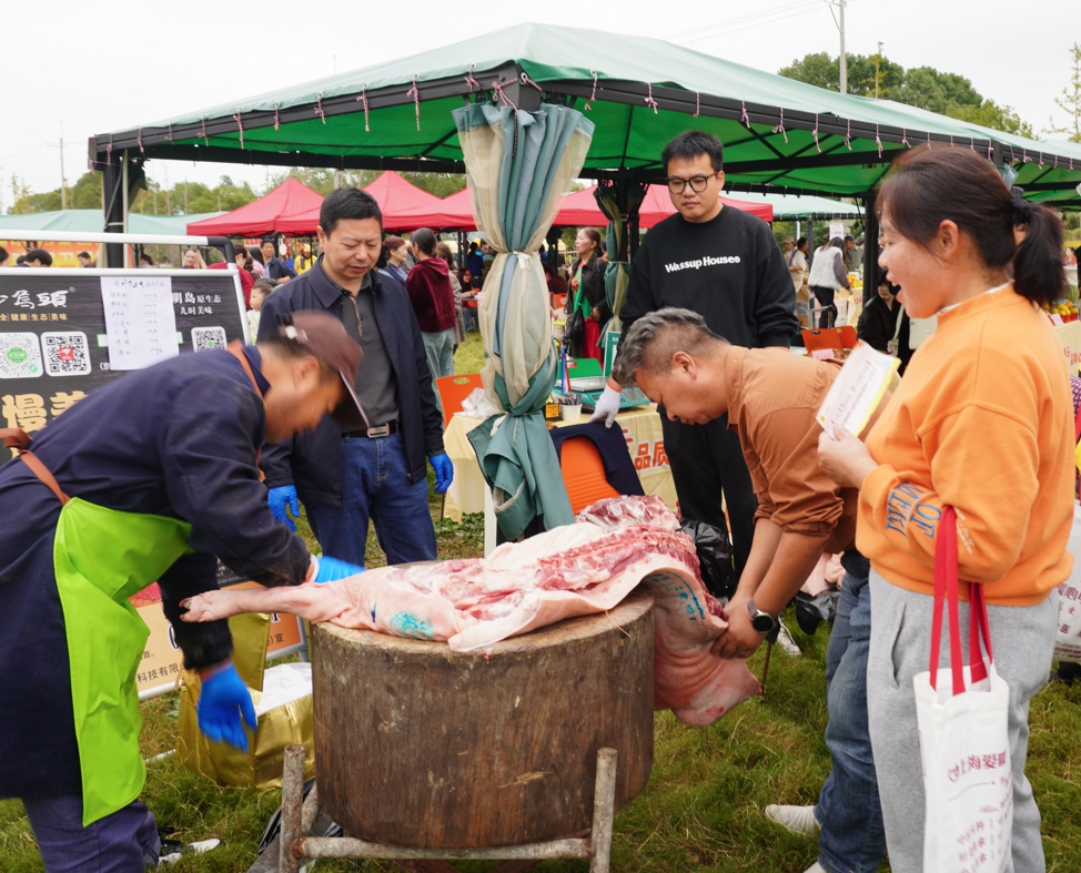 记者看到,职工品质生活节活动现场划分了六大主题区域。走进“舌尖崇明”美食荟萃区,浓郁的米香味扑鼻而来,职工争相品尝崇明糕等特色美食。在“匠心传承”非遗文化区以及创意工坊区,本地匠人正手把手教职工制作土布、鸭蛋彩绘、香囊等作品,感受非遗和民俗魅力。“品质生活”服务区吸引了不少趁着空闲时间赶来参加活动的外卖小哥,测量血压血糖,咨询互助保障计划,感受工会的关心与关爱。在美服体验区和“丰收喜悦”互动娱乐区,职工不仅可以穿上汉服打卡拍照,还可以参与定点打靶、盲摸猜百果、丰收知识问答等小游戏。值得一提的是,职工参与游戏并集满三个章,就可以兑换购物券,选购包含生鲜、速食食品、化妆品、工艺品等在内,具有崇明特色的产品。“我们今天带来了将近400斤沙乌头猪肉,这是崇明本土品种,肉质肥而不腻,简单烹煮便满屋飘香。”实惠的价格,上乘的品质,令沙乌头猪肉摊位在当天颇具人气。上海沙乌头农业科技有限公司副经理施东源告诉记者,猪肉都是早上新鲜屠宰的,并全程冷链运到现场售卖,不到一个小时便被抢购一空。