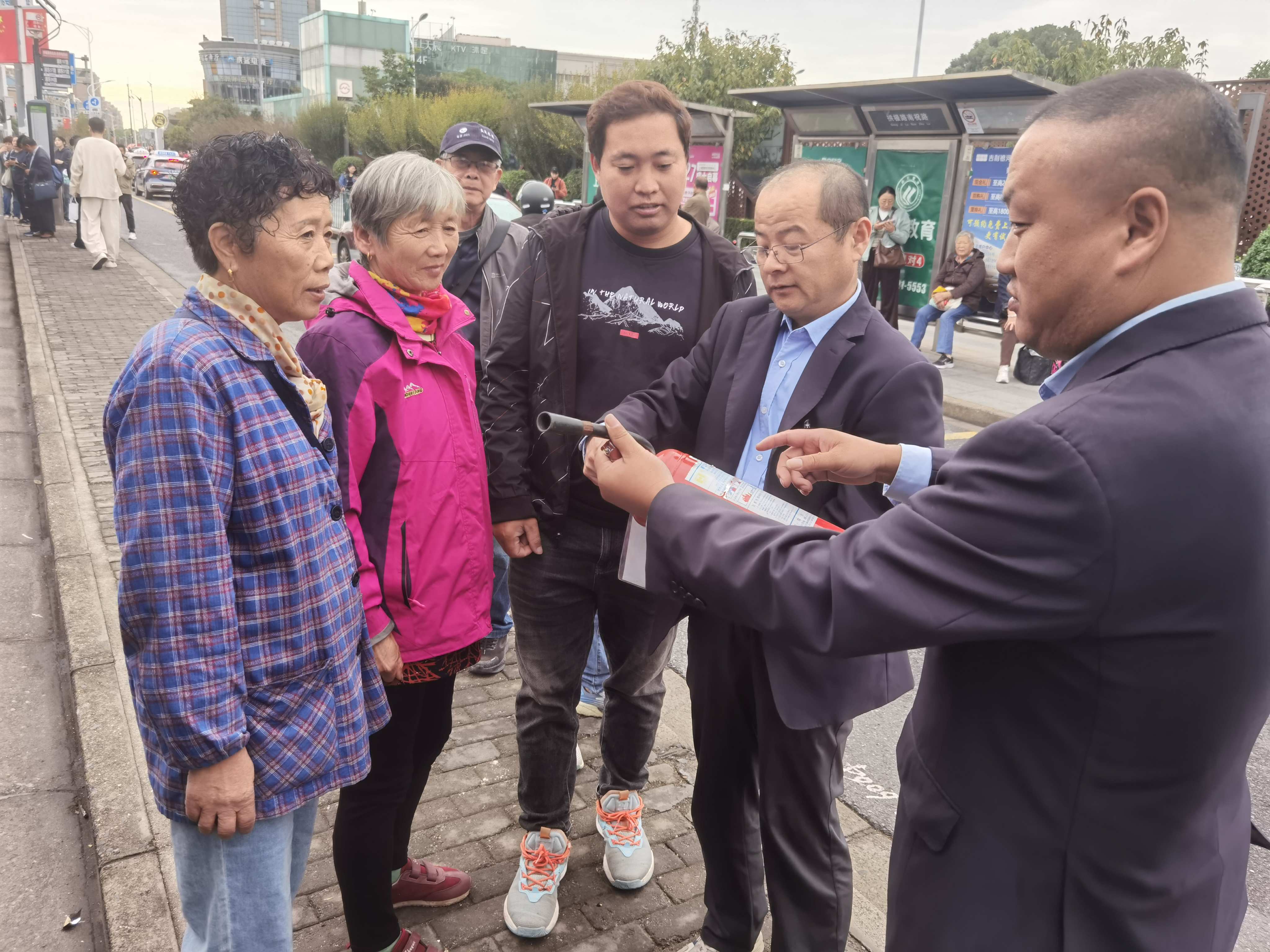 在浦东79路始发站,一场消防安全宣讲在此展开。管理员朱亚平手持灭火器,面向候车乘客细致讲解家庭防火要点。“一个插线板同时连接多个大功率电器,就像让一个人扛几百斤重物,极易引发事故。”他用生动比喻提醒居民警惕用电安全隐患。