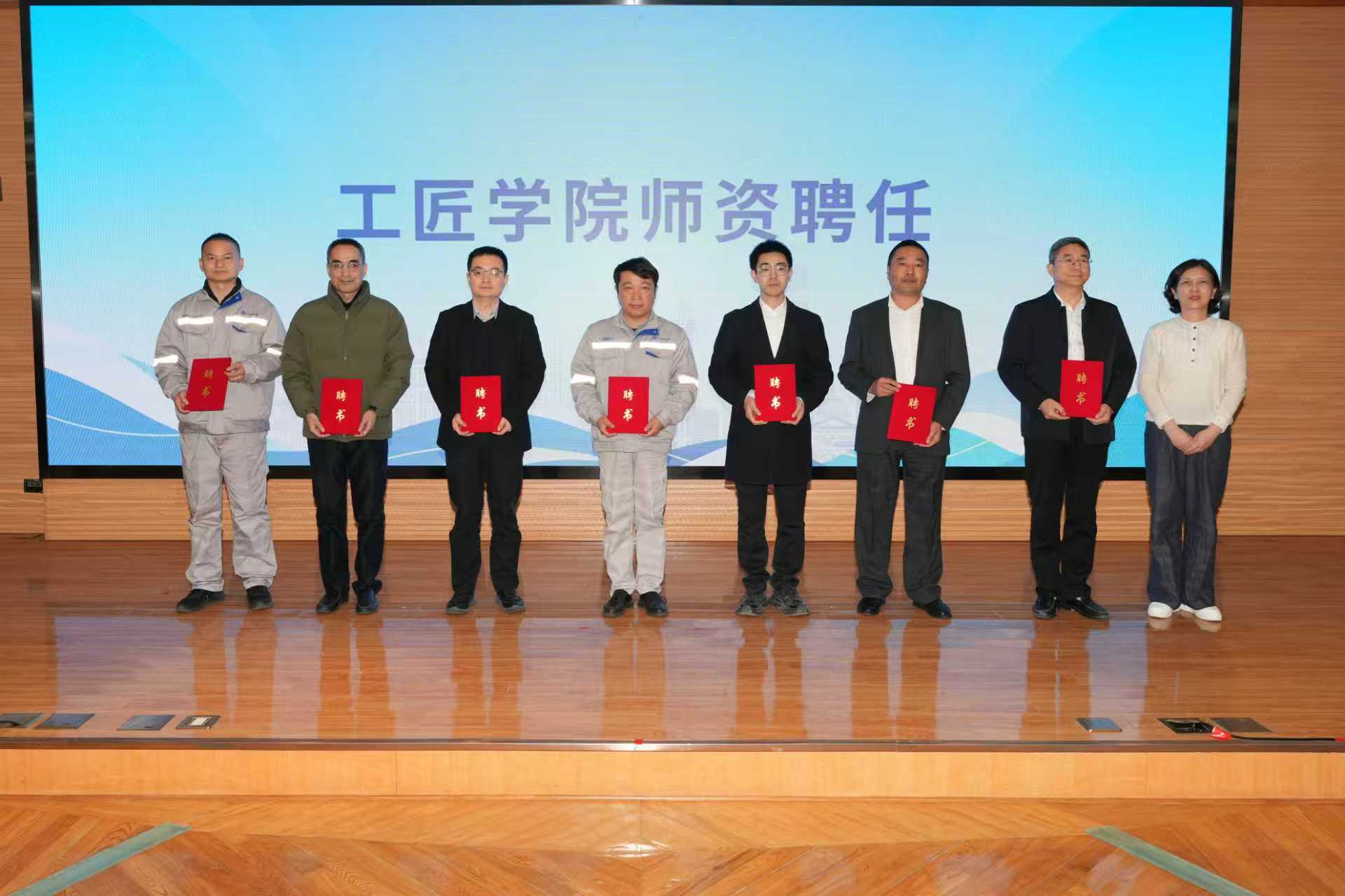 揭牌仪式上,全国劳动模范、大国工匠、振华重工特级技师魏钧受聘担任学院院长。深耕焊接领域三十余年的他,不仅攻克多项世界级技术难题,更参与众多国家重大工程项目,将以丰富的一线实践经验引领学院发展。现场,学院还聘任了首批10位“特聘导师”,涵盖高端制造、核电技术、建筑工程、工程测量等多个专业领域。这些导师均为劳模工匠、技术能手等行业精英,将以言传身教传承精湛技艺,诠释工匠精神。