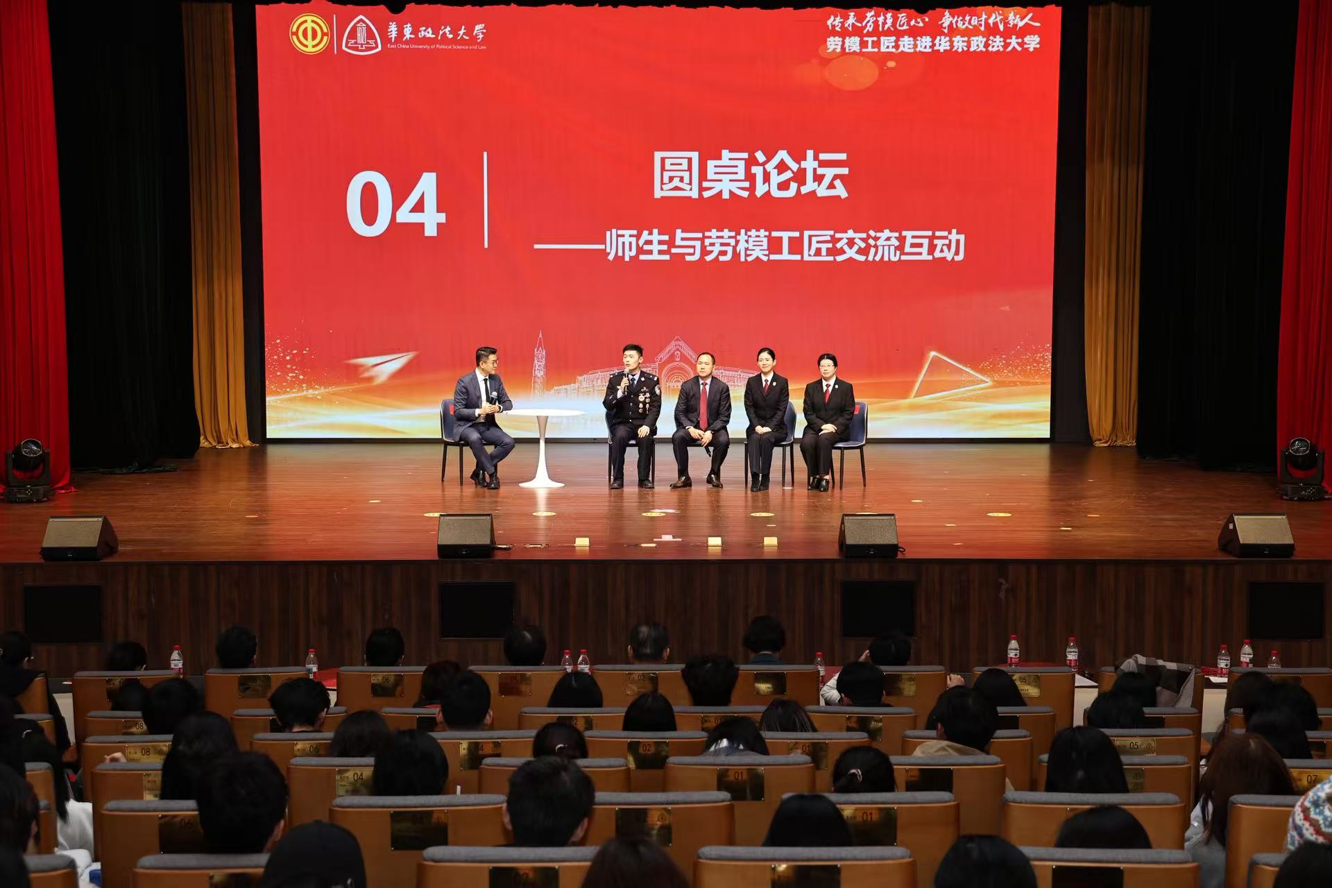 今天下午,由上海市总工会主办、上海市教育工会协办的“传承劳模匠心 争做时代新人”劳模工匠进校园宣讲活动在华东政法大学松江校区举行。四位来自法治领域的劳模先进,与百余名学子面对面交流,一来一往间,法治之光在代际中发扬传承。