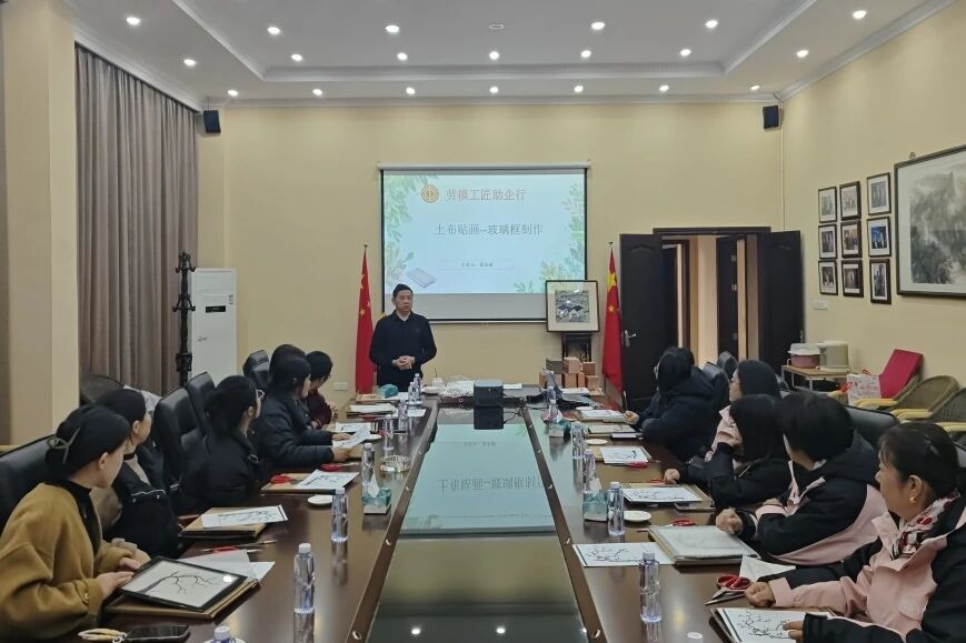 12月上旬,活动再次举办,并邀请金山工匠、金山土布贴画创始人姜永勋进行现场技艺传授。在姜老师的专业讲解与细心指导下,参与职工亲手体验土布裁剪、拼贴与创作,将质朴的土布转化为一幅幅生动精巧的画作。实践过程不仅让大家领略了传统非遗技艺的独特魅力,更在“手脑并用”中深刻体悟工匠精神对技艺极致追求的内涵。