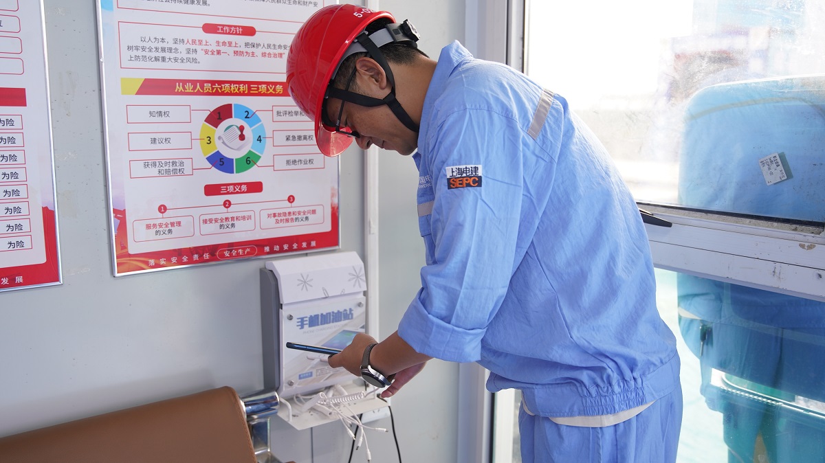 如何体现工间休息室的“移动”功能?工会副主席杜英宏告诉记者,在越州±800千伏换流站工程、海南LNG接收站二期工程等项目现场,这些由集装箱拼装而成的工间休息室,既能在项目结束后整体转移、重复使用,也能在同一工地内根据施工进度灵活挪位——哪一侧施工任务重,就把休息室移到哪一侧,让工人少走路、快歇脚。