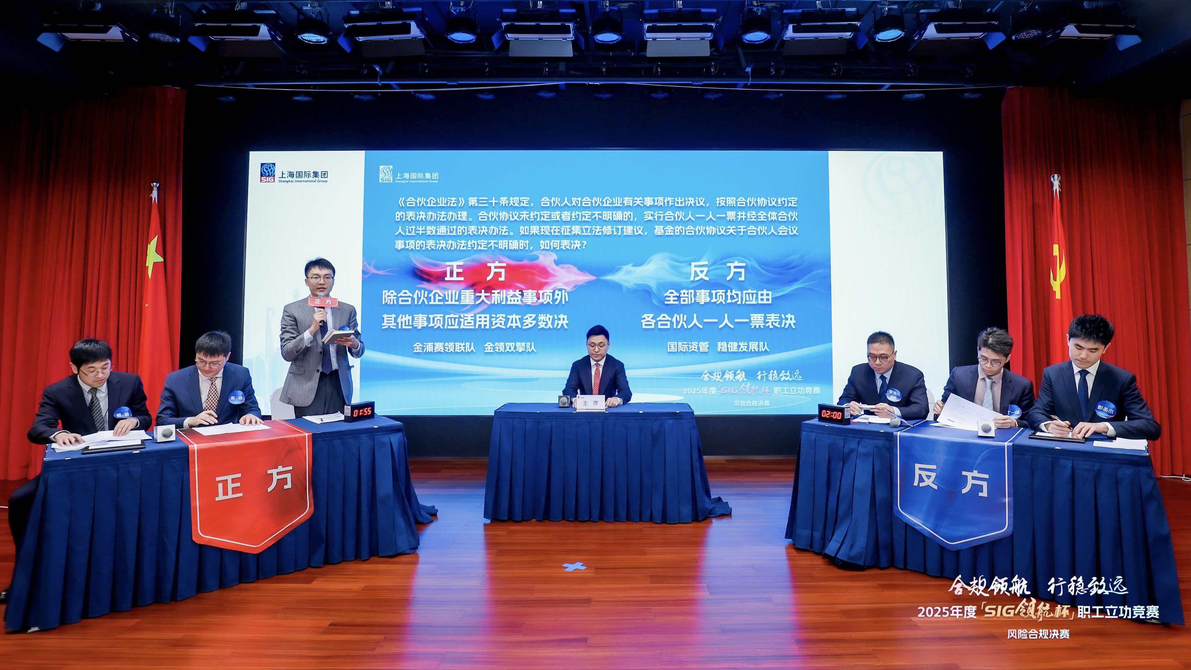 12月25日,上海国际集团“SIG领航杯”风险合规立功竞赛决赛在激烈的辩论中迎来高潮,6支决赛队伍展开终极交锋,呈现了一场融合法律智慧与业务洞察的巅峰对决。最终,集团下属国际资管公司的“稳健发展队”勇夺冠军。