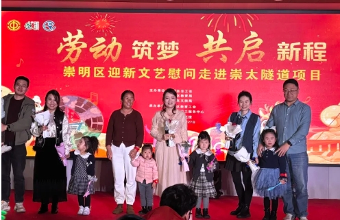 “劳动筑梦 共启新程”崇明区迎新文艺慰问日前先后走进崇太长江隧道和北沿江高铁崇明特大桥项目现场,为平日奋战在建设一线的工友们带来一场文化盛宴。