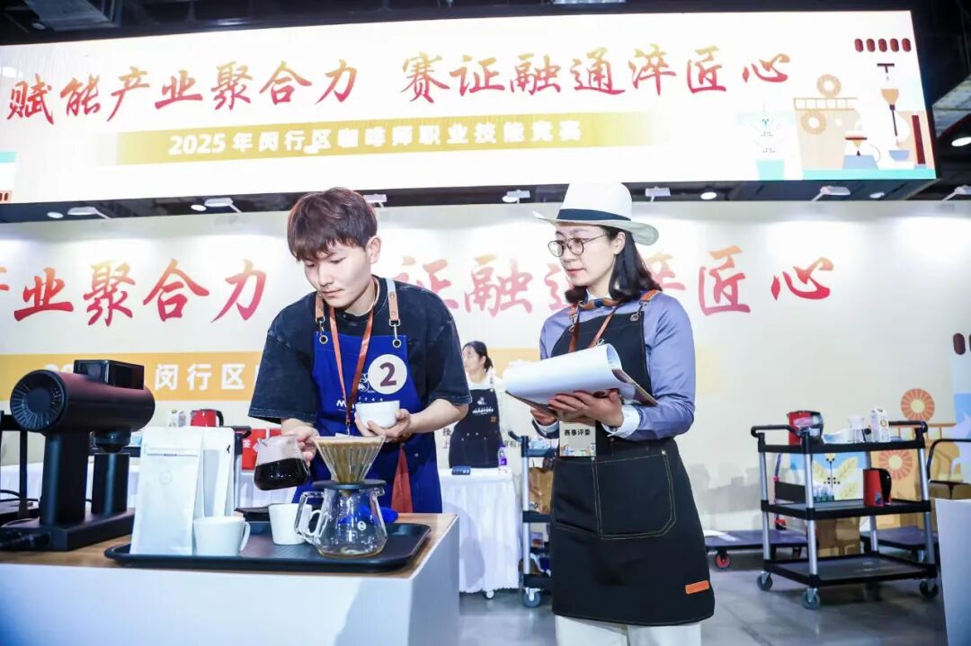 在2025年举行的一场闵行区咖啡师技能竞赛中,选手们不仅可以“一手拿奖杯,一手持证书”,劳动和技能竞赛对于行业的助推作用也在竞赛中体现:比赛开幕式上,由42家闵行咖啡上下游企业共同发起的“闵行区咖啡产业联盟”正式成立。