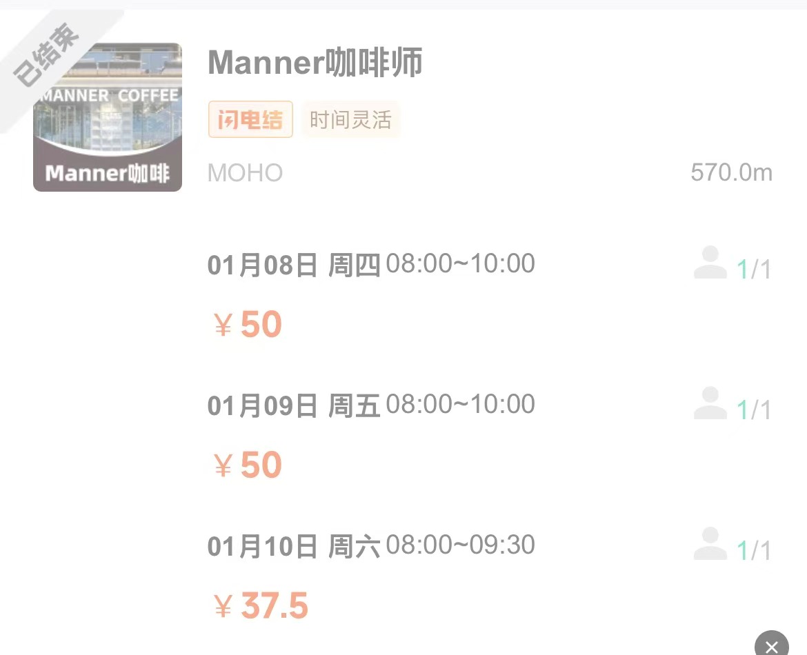 在社交平台上,记者找到一位正在Manner兼职的网友。网友GG表示,她一般一天会干2个小时左右,然后每个门店都去抢一下试试,她喜欢体验不同门店的氛围,然后最终选择一个适合自己的。“和全职前辈的沟通很重要,有的全职会非常照顾兼职,会教会你很多门店的技巧。还会主动问你,想喝什么,因为每天一杯的免费咖啡是兼职的福利,但有的全职就不会主动来问。”GG认为,在Manner的兼职环境让她整体感觉不错。她同时提到了加班的情况,“比如我抢到的时间是2个小时,但门店比较忙,会要求我们再多干一小时,那我也会选择留下来帮忙。”记者获悉,这样的加班情况则需要全职员工填写相关证明,提交后审核,才能拿到加班的工资。GG表示,在Manner的兼职,时间上很灵活,每天的薪酬到账也很快,几乎是秒结的状态。但她同时也提到,Manner收入1小时25元和上海最低小时工资标准是一样的,“虽然有点低,但好在压力不大,也能学到一些东西。”