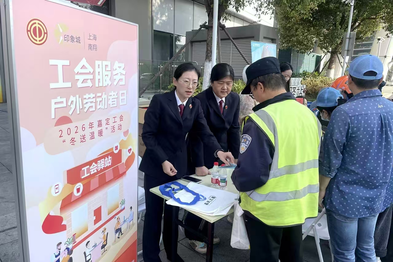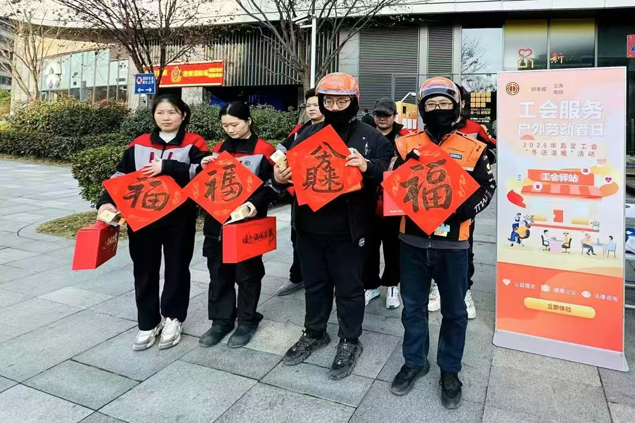 每年的1月15日是“工会服务户外劳动者日”,为致敬每一份平凡中的伟大,今天(1月15日),嘉定区总工会在南翔印象城开展了“工会服务户外劳动者日”主题活动,以实打实的关怀、心贴心的服务,为户外劳动者送上专属温暖与敬意。