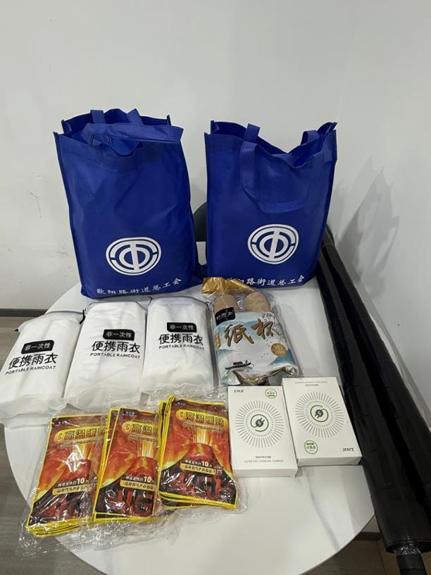 聚焦服务提质,街道对东部街区户外爱心接力站点进行功能升级,新增冰箱、微波炉、WiFi、卫生间、AED急救设备等便民设施,全方位织密服务保障网。同时,街道总工会还在复美大药房(祥德店)、中国邮政(邮电新村邮政所)等爱心接力站内准备了满载关怀的“爱心礼包”,内含雨披、雨伞、姜茶、暖宝宝、充电器等实用物资,精准对接户外劳动者需求。