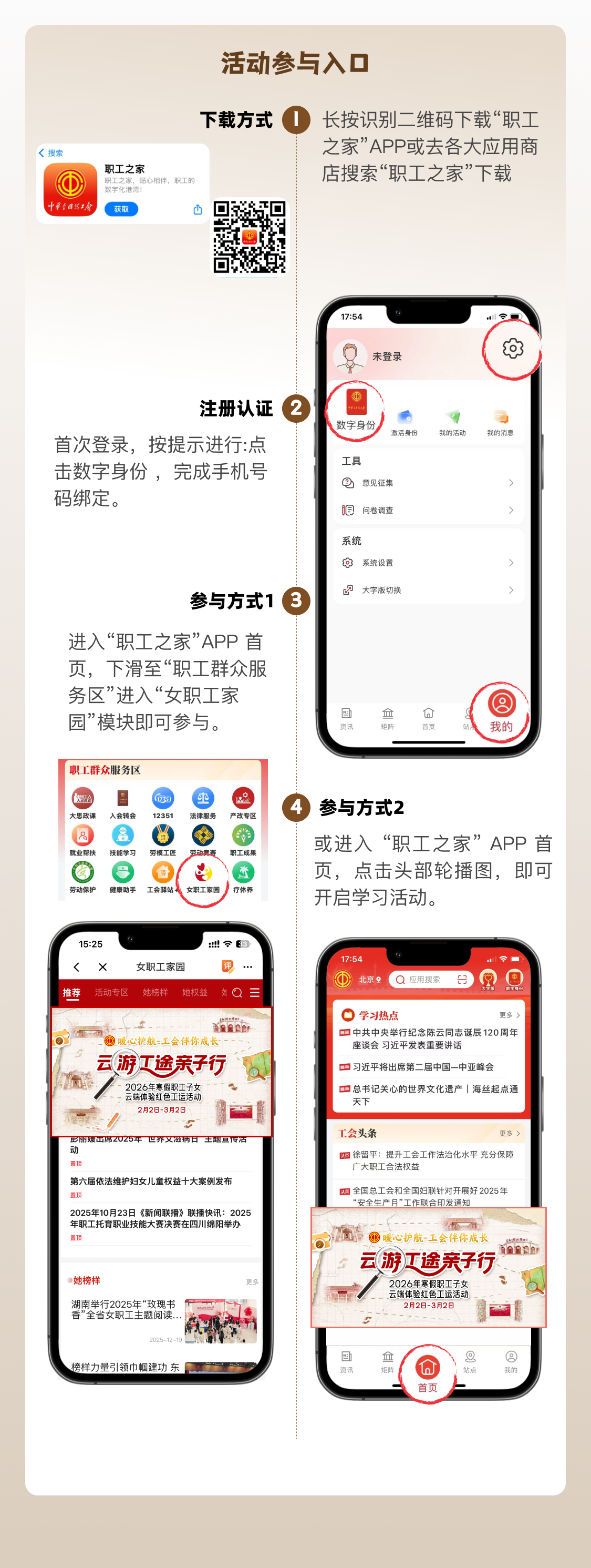 为丰富职工子女假期生活,全国总工会女职工部“暖心护航——工会伴你成长”系列活动之“云游工途亲子行”——2026年寒假职工子女云端体验红色工运活动上线啦!