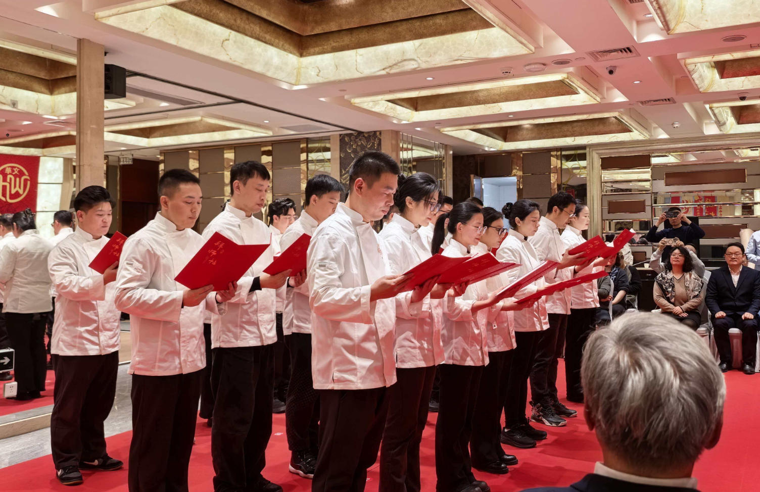 行拜师礼、敬拜师茶,近日,大国工匠、上海市现代食品职业技能培训中心首席技师干文华收徒拜师仪式举行,二十名烘焙行业优秀技术人员正式拜入干文华门下,其中包含8位全国技术能手,他们皆是行业内深耕技艺、追求极致的中坚力量,怀揣着对烘焙匠艺的赤诚与敬畏,愿以躬身求教之姿,承大师之技,传匠人之心。