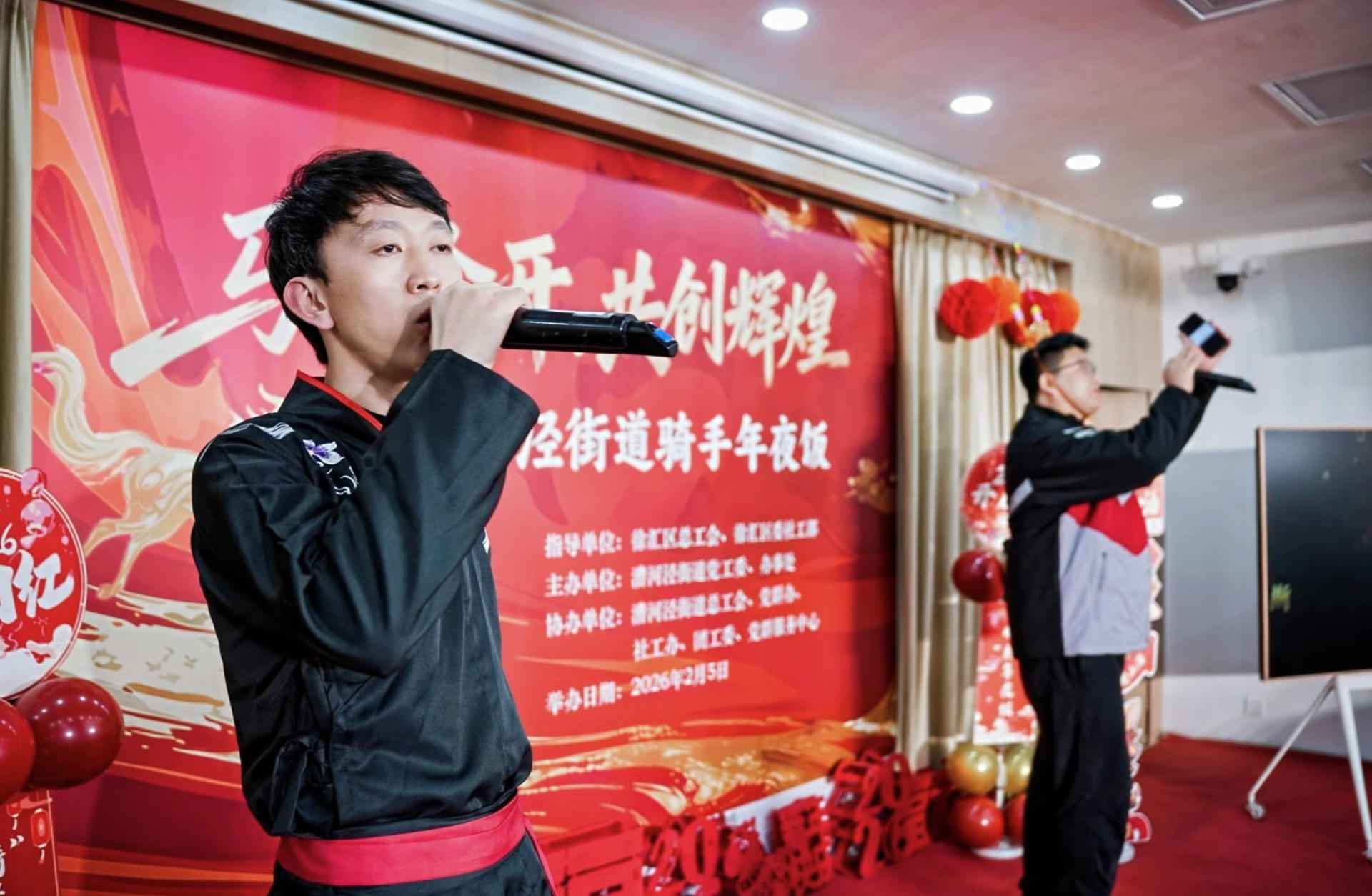 2月5日晚上,徐汇区漕河泾街道法治空间内灯火通明、暖意融融,漕河泾街道骑手暖心年夜饭热闹开饭,来自邮政、京东、美团、菜鸟驿站、顺丰同城等平台的外卖骑手,以及环卫、物业、家政等行业的百余名新就业群体代表,暂别奔波,围坐一堂,在欢声笑语中感受来自街道的关怀与新年的祝福。
