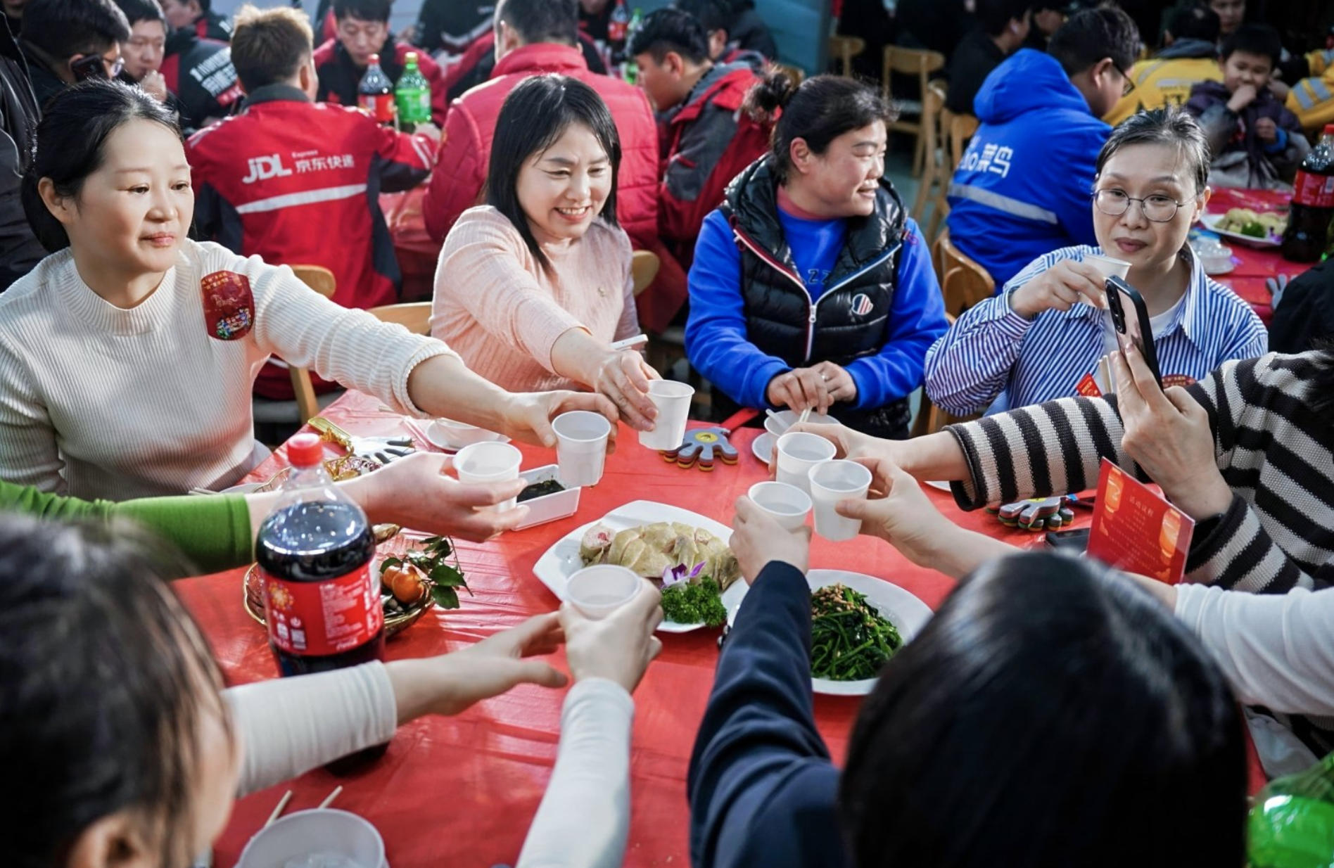 此次年夜饭的现场,不止有来自邮政、京东、美团、叮咚、菜鸟驿站、顺丰同城等多家平台的骑手,还有环卫物业、家政服务等新业态劳动者,他们大多都将在春节期间坚守岗位,为城市的有序运转保驾护航。热气腾腾的年夜饭不仅暖胃更暖心,现场丰富多彩的活动,让新就业群体切实感受到了浓浓的社会温度。