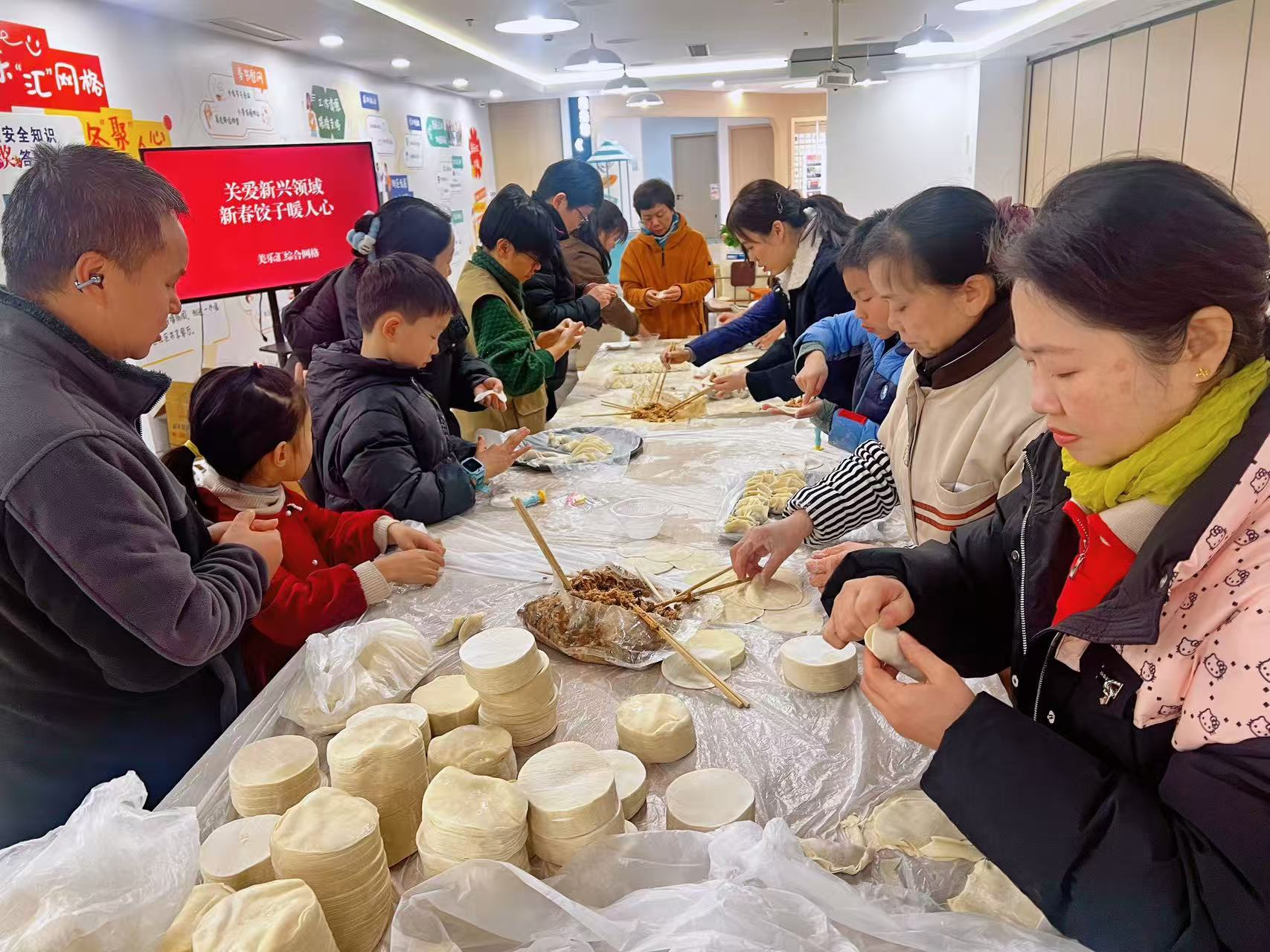 活动现场,古美书法家协会的瞿志豪、王崴成老师挥毫泼墨,一副副寓意吉祥的春联、一个个饱含福气的“福”字新鲜出炉,白领们排起长队争相领取,将新春美好期许收入囊中;温馨的水饺区里,不同企业的职工围坐一桌,揉面、包馅、煮饺,彼此切磋手艺、闲话家常;编结体验区更是人气满满,大家跟着老师学习编织吉祥结,在一针一线中感受传统民俗魅力。指尖的温度、舌尖的香甜、心间的暖意,让园区处处洋溢着团圆祥和的节日氛围。