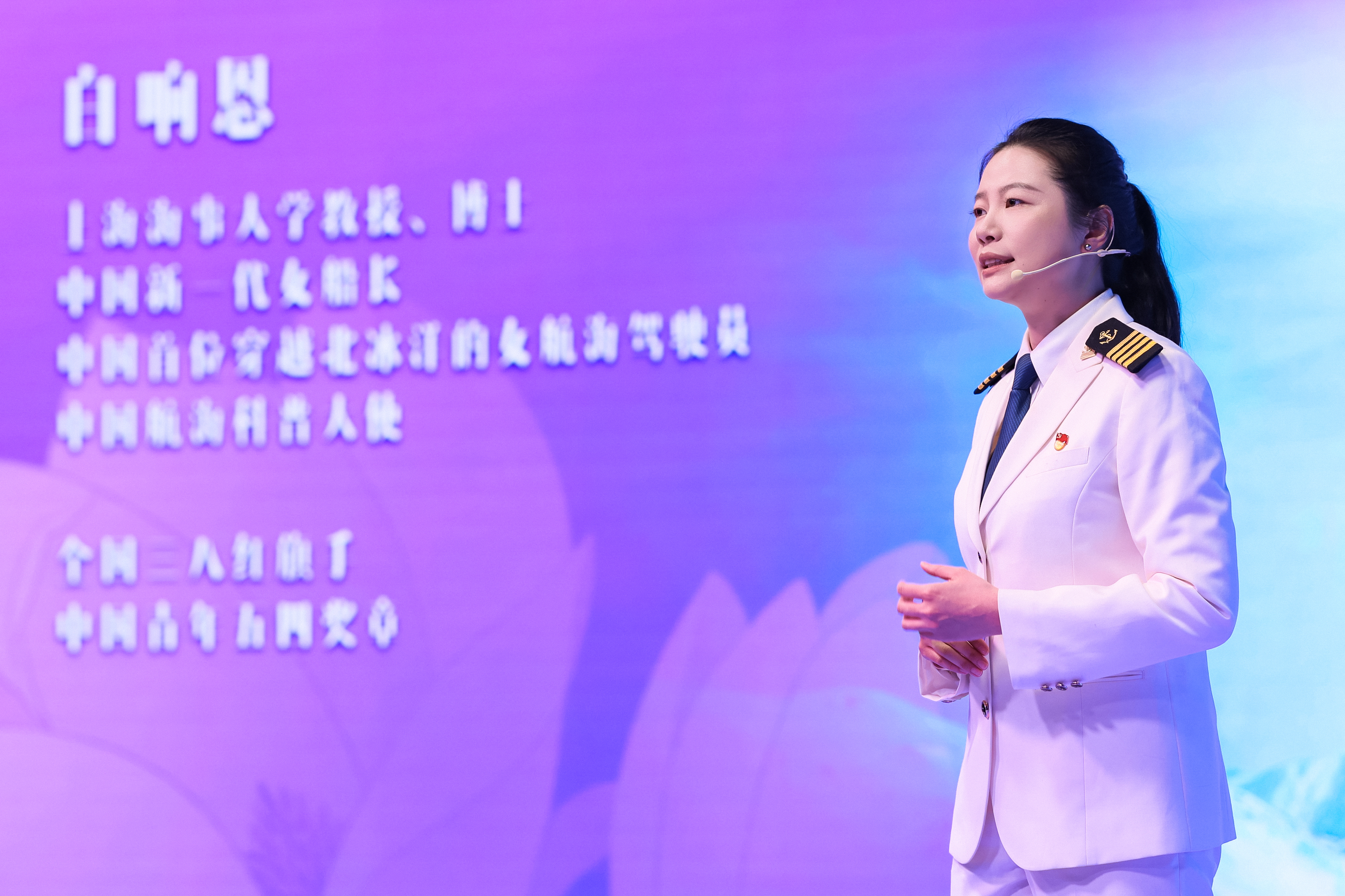 作为当天活动的重点篇章,一场主题情境叙事舞台剧成为活动亮点。包括黄琳璐所代表的女交警在内,六组不同行业的7名女性以多媒体+人物叙事+表演的创新形式,以“工装之美”为切入口,讲述着她们在浦东的真实故事:上海市劳动模范张怡博士,带领团队坚守十年攻克新药研发瓶颈,彰显科研女性之“毅”;中科新松产品经理范亮亮团队,深耕机器人领域勇于突破,诠释开拓之“创”;盒马女店长赵丽琼、叮咚区域主管乔小芳,扎根民生一线传递奉献之“暖”;长存创芯工会女工部,以刚柔并济的服务展现巾帼之“柔”;中国首位穿越北冰洋女航海驾驶员白响恩,在极地冰海间诠释驭海之“勇”……每一件工装背后的故事,是每一个独一无二的女性,见证了时代浪潮里的“她”力量。