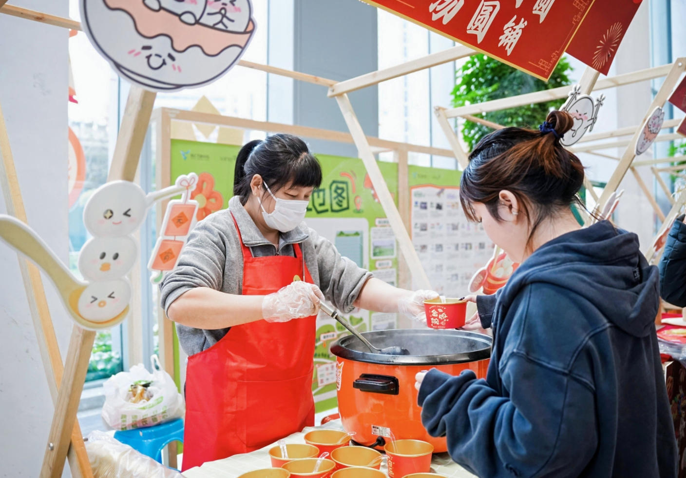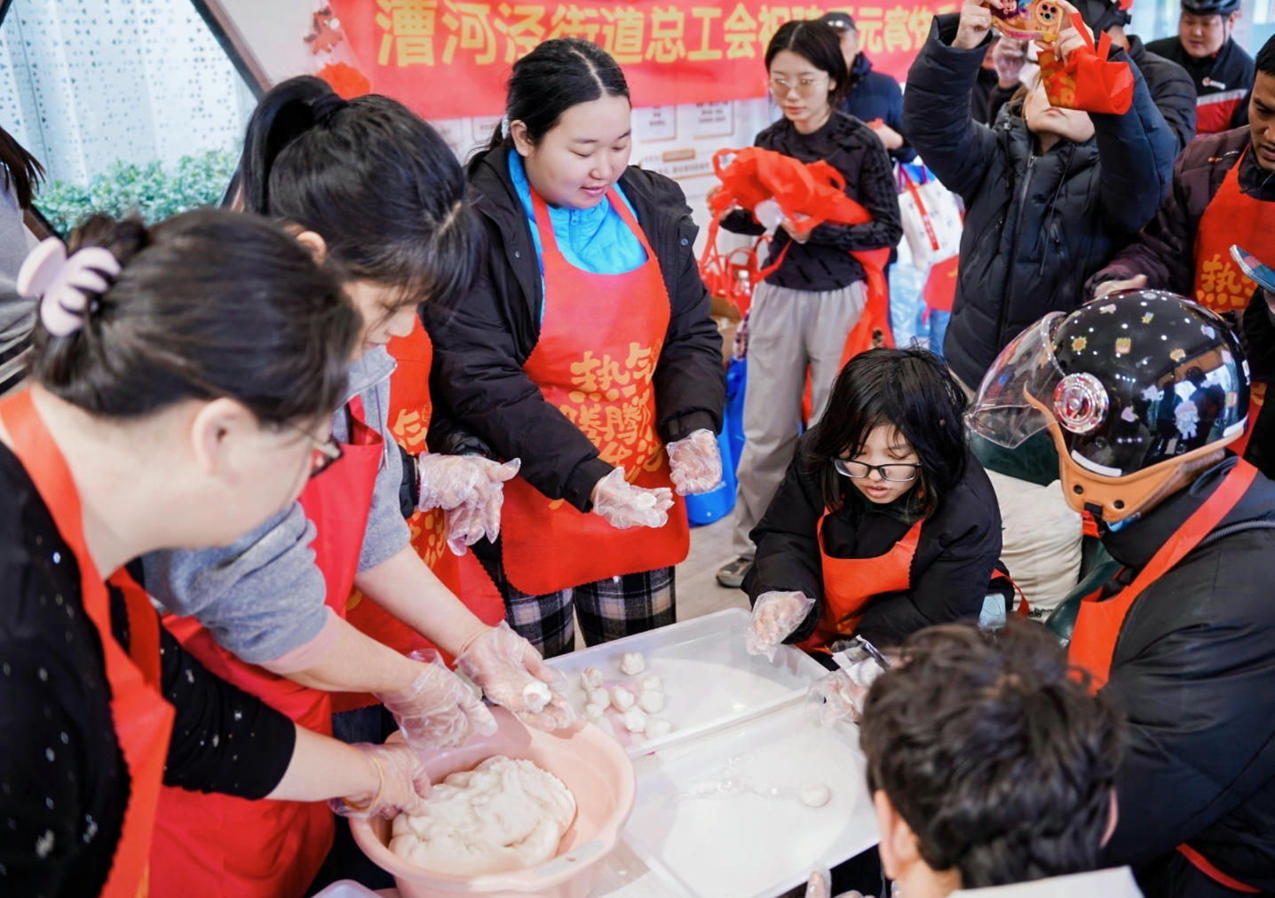 楼宇职工利用午间一小时吃汤圆、剪窗花,外卖小哥们下午空闲时来到小哥驿站体验包汤圆。今天是元宵佳节,由徐汇区总工会主办,漕河泾街道总工会、漕河泾街道小哥驿站、三江片区工会联合会承办的“暖新闹元宵·企聚万科情”主题活动,在徐汇万科与小哥驿站分别启动。分时段、分场地的精准服务,让楼宇白领与外卖骑手等新就业群体,在汤圆香气中,共享工会“娘家人”带来的暖意。