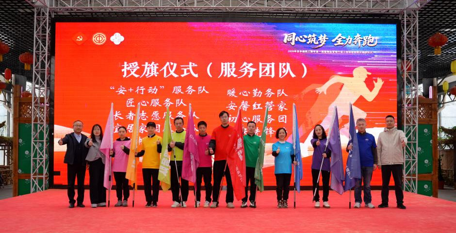 揭牌仪式后,党建引领物业治理“安+行动”等9支职工服务团队被授予队旗。各服务团队将以此为起点,深入社区、服务群众,用行动诠释“红色物业”的温度与力量。