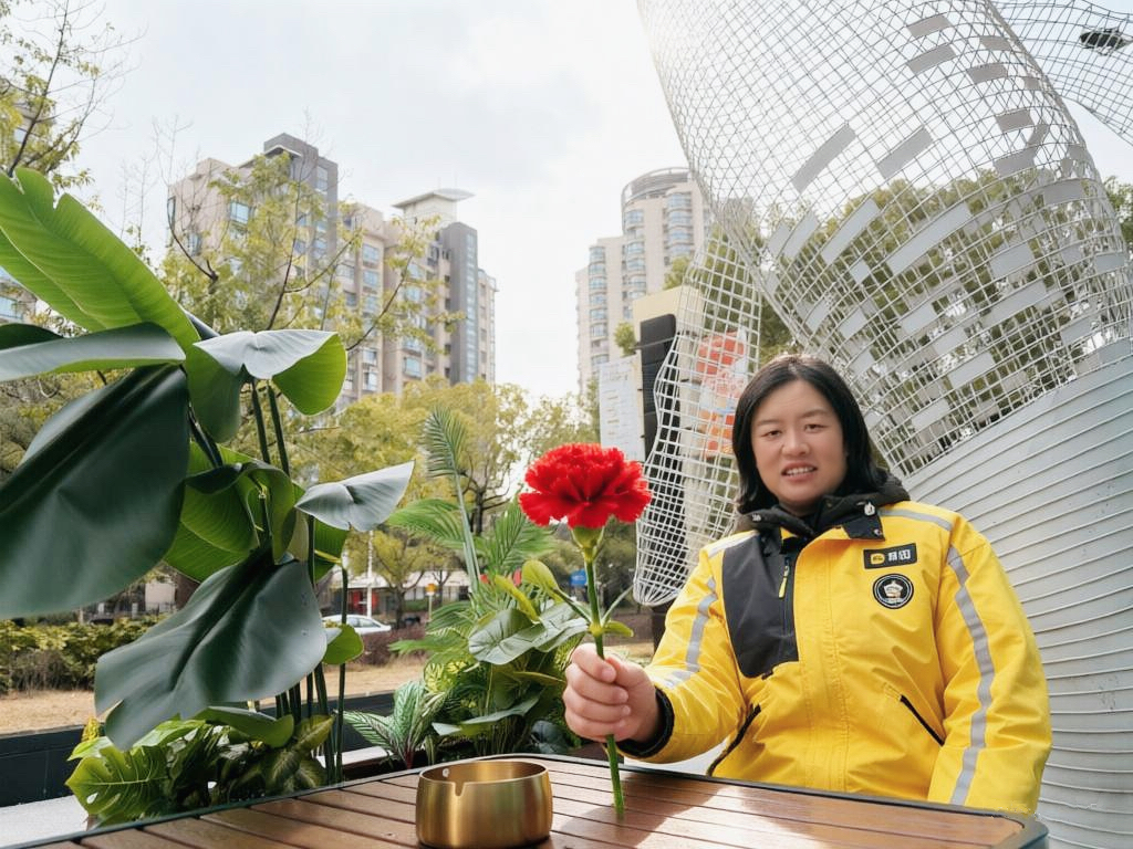 3月2日的下午,对于外卖骑手马全真来说,和往常的工作日略有不同。忙完手中的单子,她还有一个特别的“订单”——前往成山路巴黎春天,在那里,由北蔡镇总工会的工作人员为她拍下了一张张记录美丽瞬间的照片,成为她今年三八节的珍贵回忆。