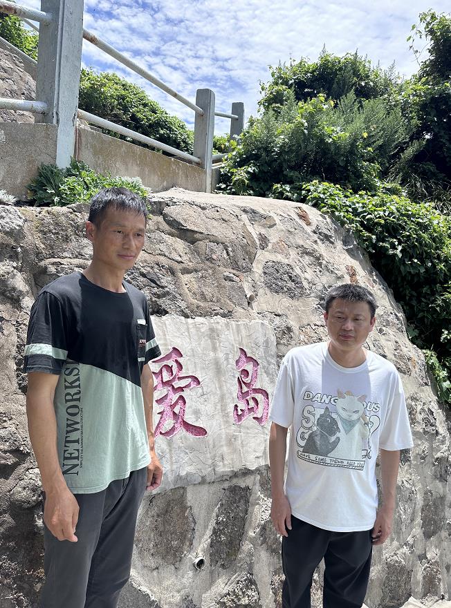 佘山灯塔的两位灯塔工人龚兵(左)、张春华(右)