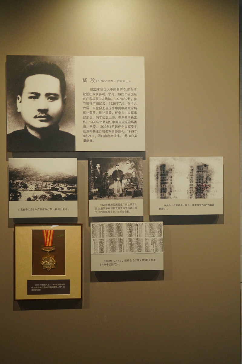 沿楼梯上到二楼展厅,杨殷、彭湃、颜昌颐、邢士贞等军委四烈士的生平事迹介绍一一在展厅呈现,一份份泛黄的书信和文件记录着当时革命者在白色恐怖环境下不屈的抗争历程。