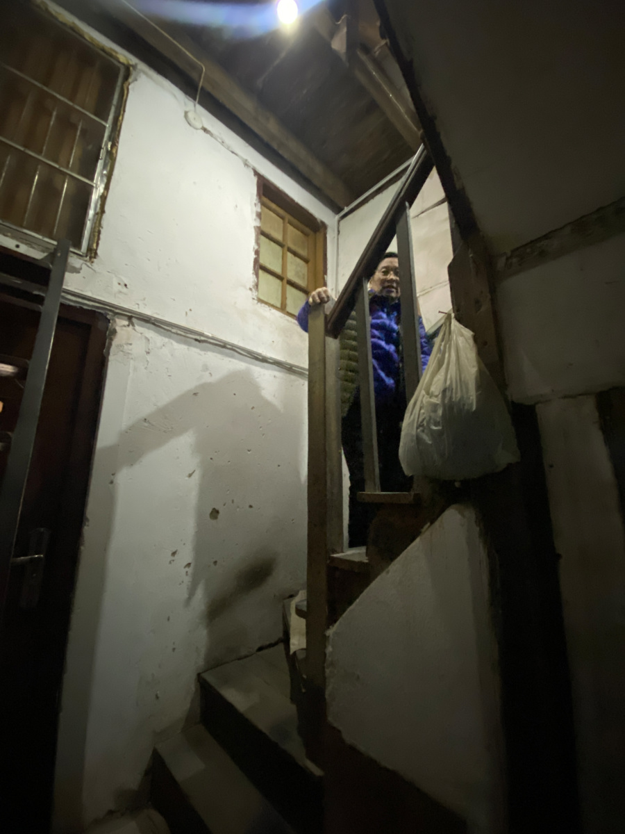 推开94号大门,记者和范伯伯一同走了进去,仿佛又完成了一次时光穿越:老式盘旋木质楼梯依稀还是“当年的模样”,遗憾是最多只容许一人通行。踏上楼梯,记者隐约还能听到“吱呀”的回声,范伯伯腿脚略有不便,需要扶着把手才能往上攀,细细打量,他扶住过的地方已被磨得有些发光。“现在,虹口正在推进‘美丽家园’建设,我们的生活环境也在逐步改善中,一楼的厨房间开始重新装修了,等修好又是一番新的景象。”范伯伯告诉记者。