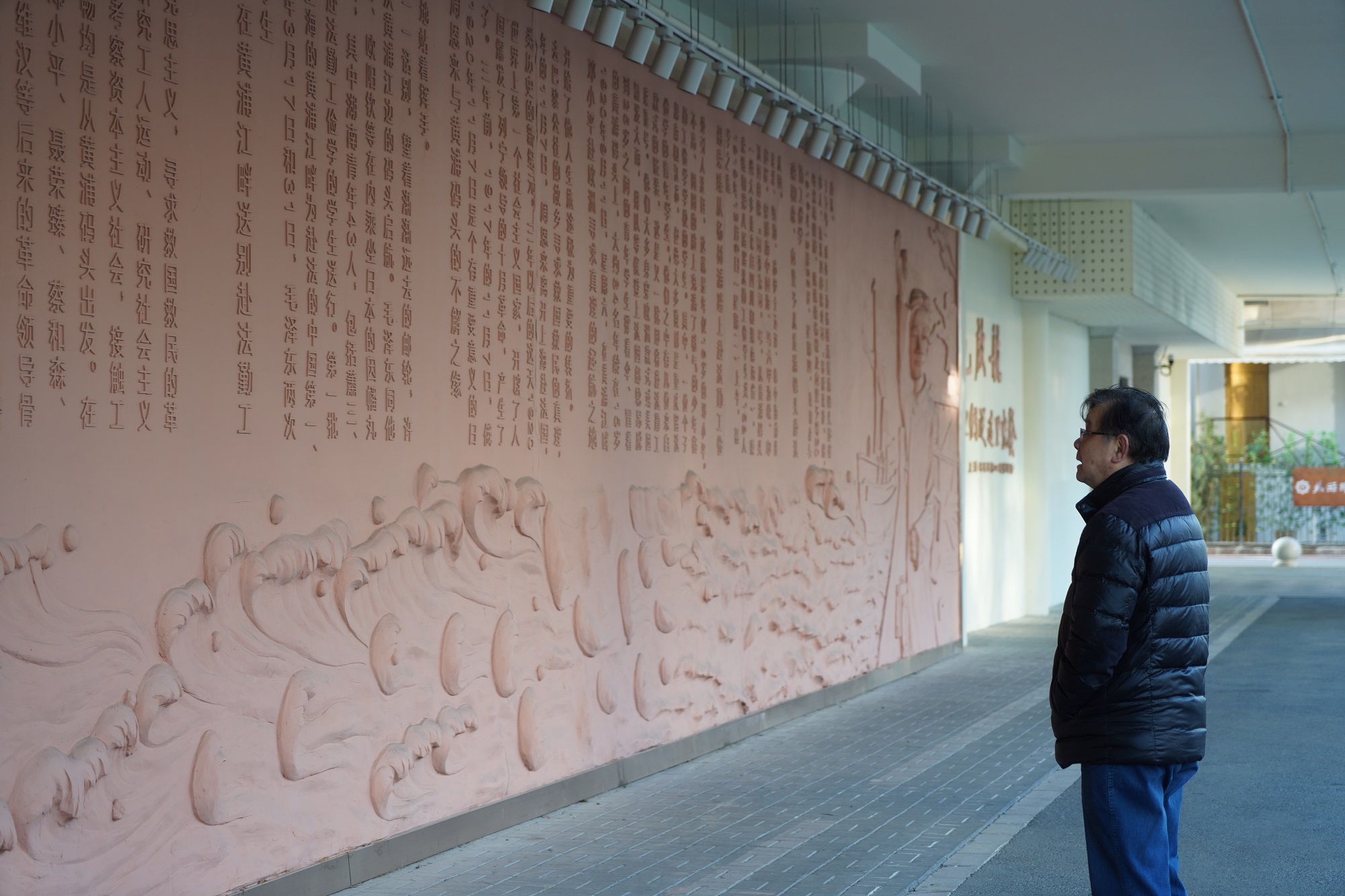 不过,故事的主角并不是黄浦码头,而是当年从码头启程远行的人。在秦皇岛路东侧,一面砖粉色的浮雕墙吸引了记者的注意,在夕阳余晖的照射下,静谧而庄严。浮雕墙的开篇写着“红色启航,他们从这里出发”两行大字。阅读上面的文字,记者了解到,当年,曾有一批有志青年,怀着救国救民、追求真理的满腔热情,从码头坐邮轮启程赴法勤工俭学。