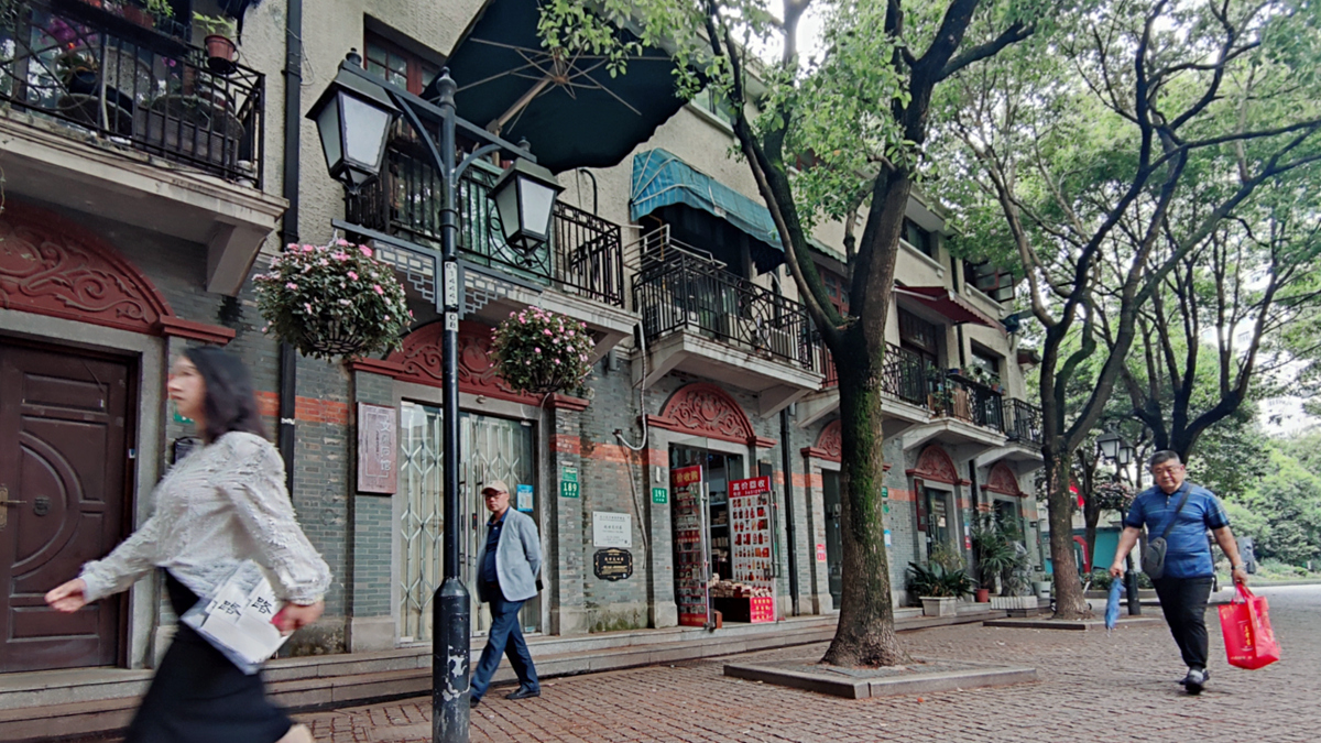 初夏,雨后的多伦路文化名人街褪去了小长假的喧嚣,阳光洒在起伏的石块路上,一幅平和静谧的画面。