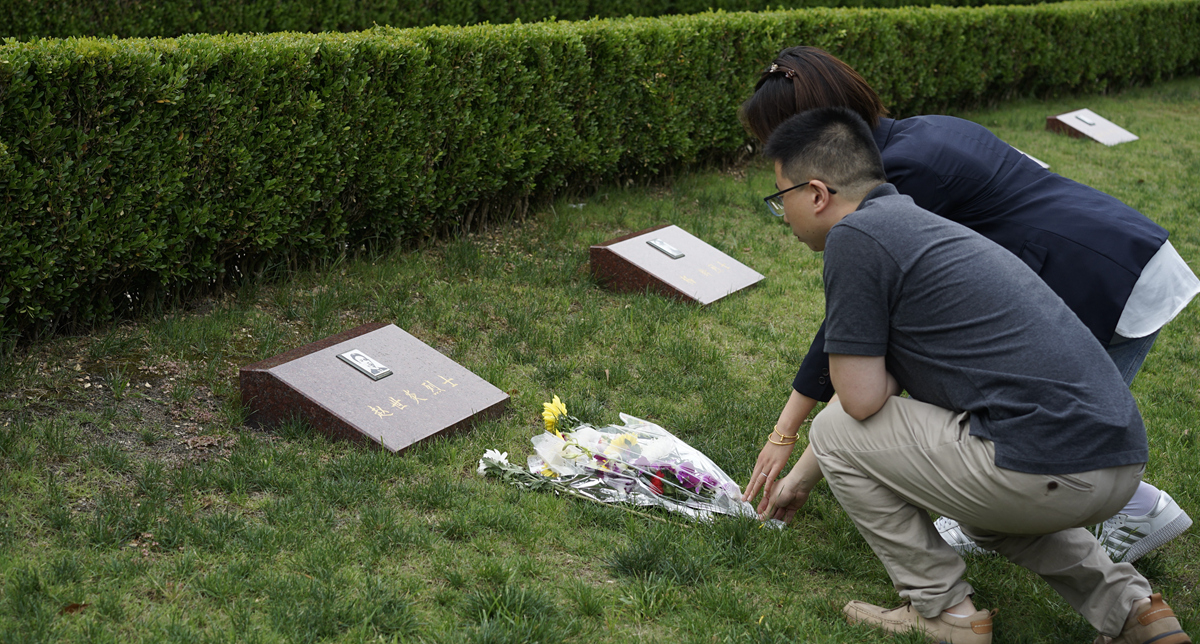 在龙华烈士陵园,记者见到了赵世炎烈士的墓地。苏莉敏介绍,许多为党和革命事业牺牲的烈士均安葬于此,烈士墓地与纪念堂呈半圆形月亮状,寓意烈士精神与日月同辉。记者和苏莉敏一同来到赵世炎烈士的墓前,庄重地三鞠躬并敬献菊花寄托哀思。