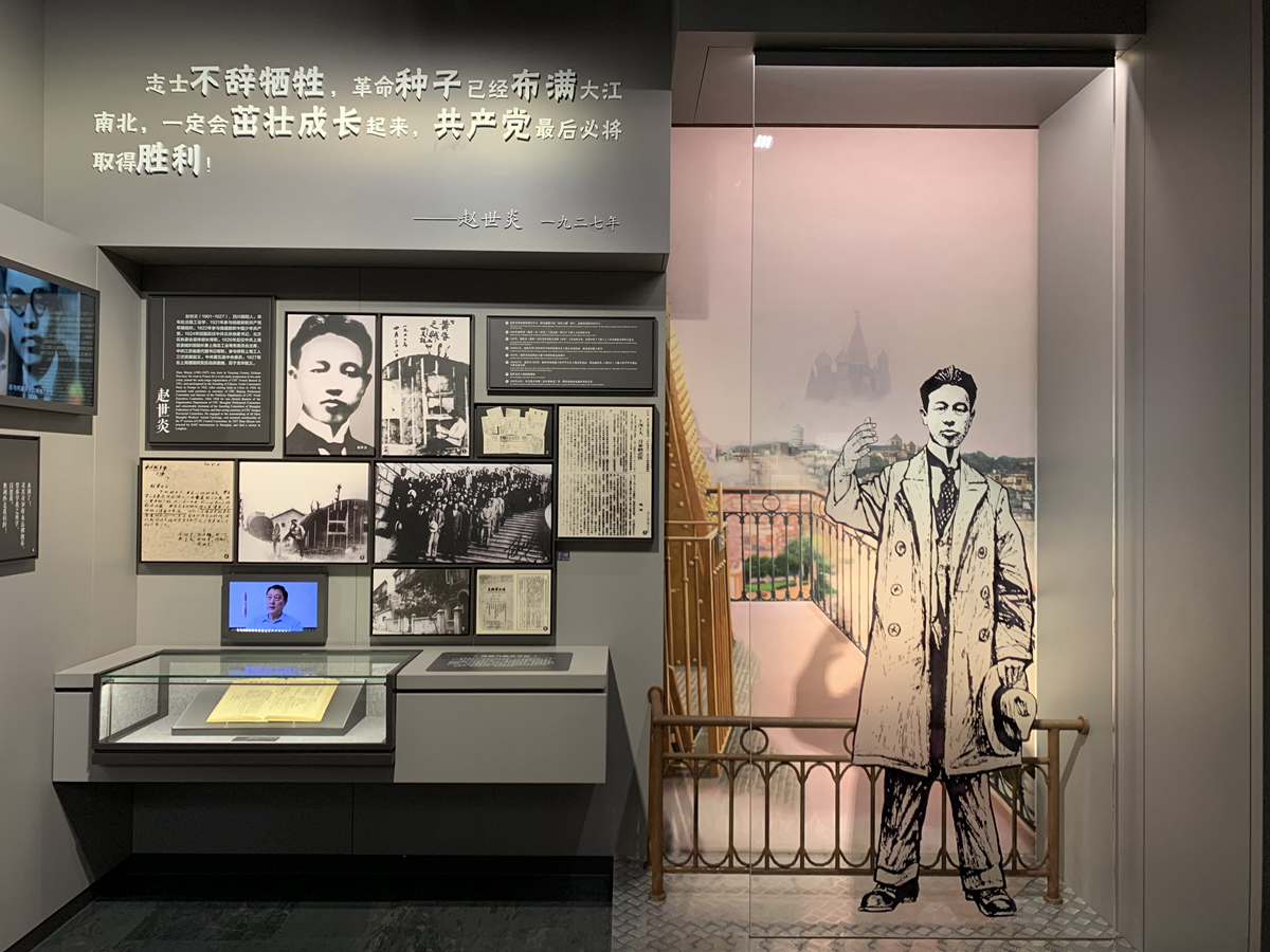 在龙华烈士纪念馆,记者见到了赵世炎的展陈版面和玻璃刻画。“其实,赵世炎的革命历程和上海有着十分紧密的联系。” 馆员苏莉敏介绍,1920年5月,赵世炎率领第十一批赴法勤工俭学青年,在杨树浦码头登上了驶往欧洲的远洋航轮。