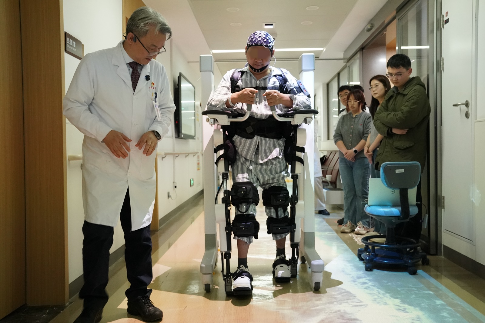 国内首例无创脑电接口、脊髓电刺激以及外骨骼机器人三技融合治疗脊髓损伤试机...