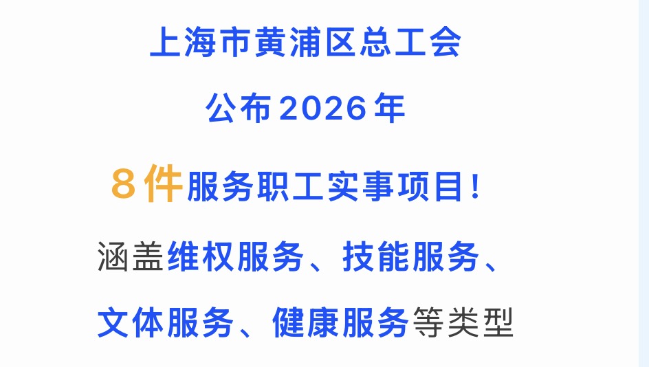 黄浦区总工会公布2026年8件服务职工实事项目,涵盖维权、技能提升等类型