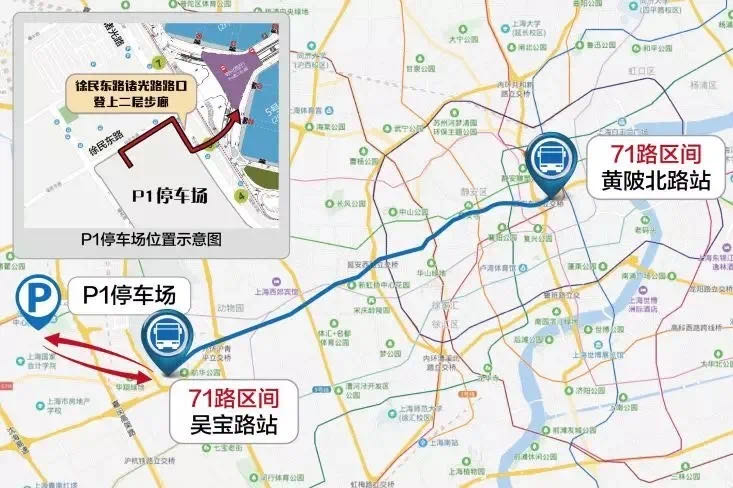 71路区间将继续开行至P1停车场的延伸线。起讫站:P1停车场—71路区间黄陂北路站,申昆路枢纽站不停靠。运营时间为:黄陂北路站7:00—18:00,P1停车场8:00—19:00