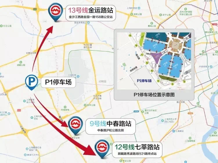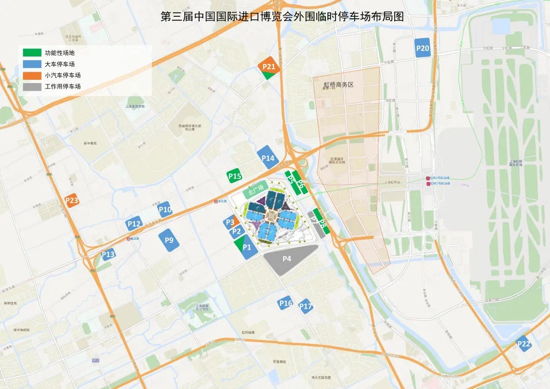 11月5日至10日,每天8:00—20:00,7条停车场接驳线往返周边停车场和国家会展中心。分别为:P9停车场—P5停车场;P10、P12、P13—P5停车场;P16停车场— P5停车场;P17停车场—P5停车场;P23停车场—P5停车场;P20停车场—P8停车场;P21停车场—P8停车场。