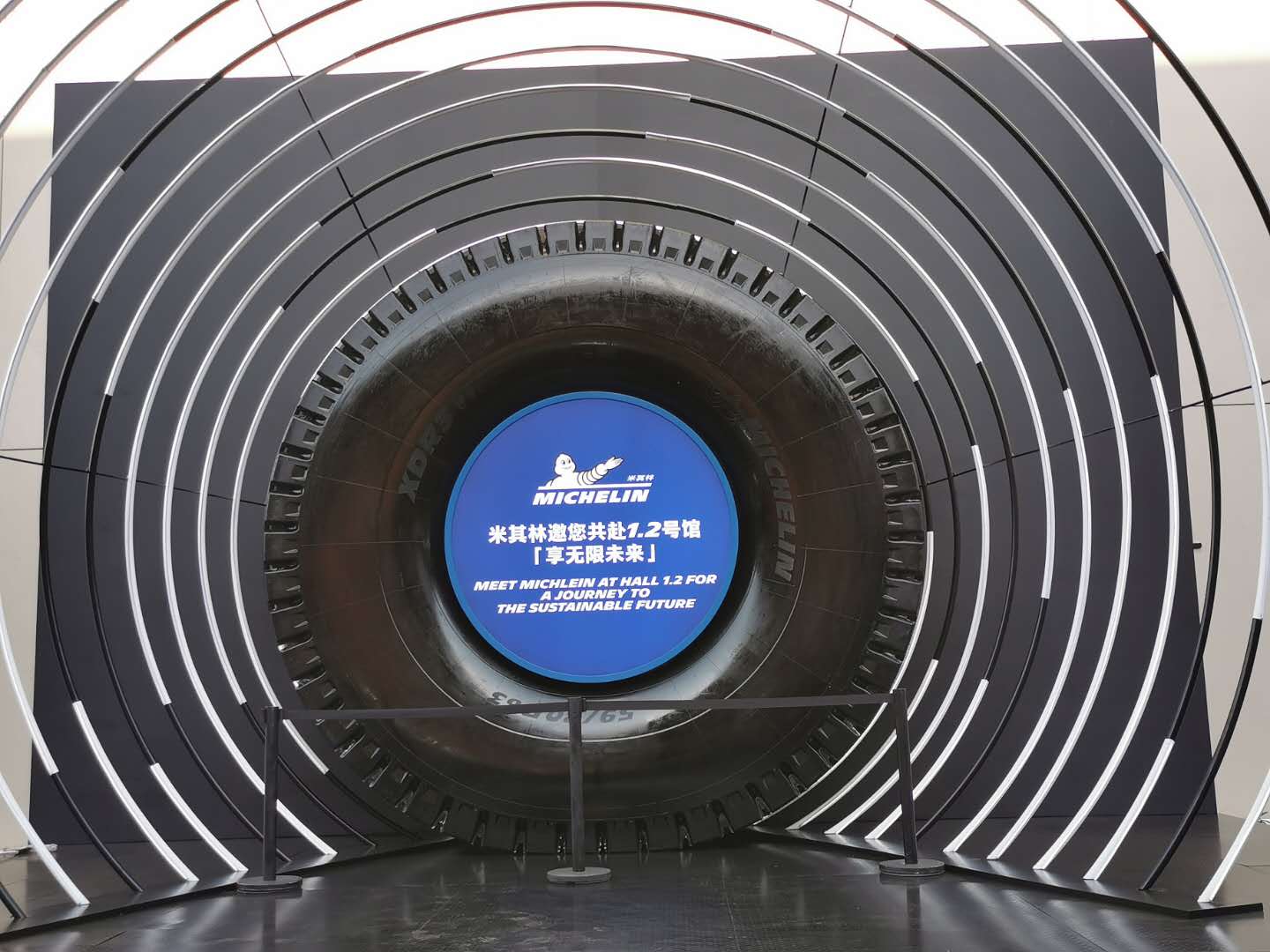 如果还不过瘾,在户外展区还有宝贝。世界500强企业米其林作为全球轮胎行业巨头,为本届进博会带来一件重磅展品——世界上最大的轮胎、米其林矿业轮胎MICHELIN XDR 3。该轮胎直径4.03米、重量为5.525吨,近距离看起来十分震撼。